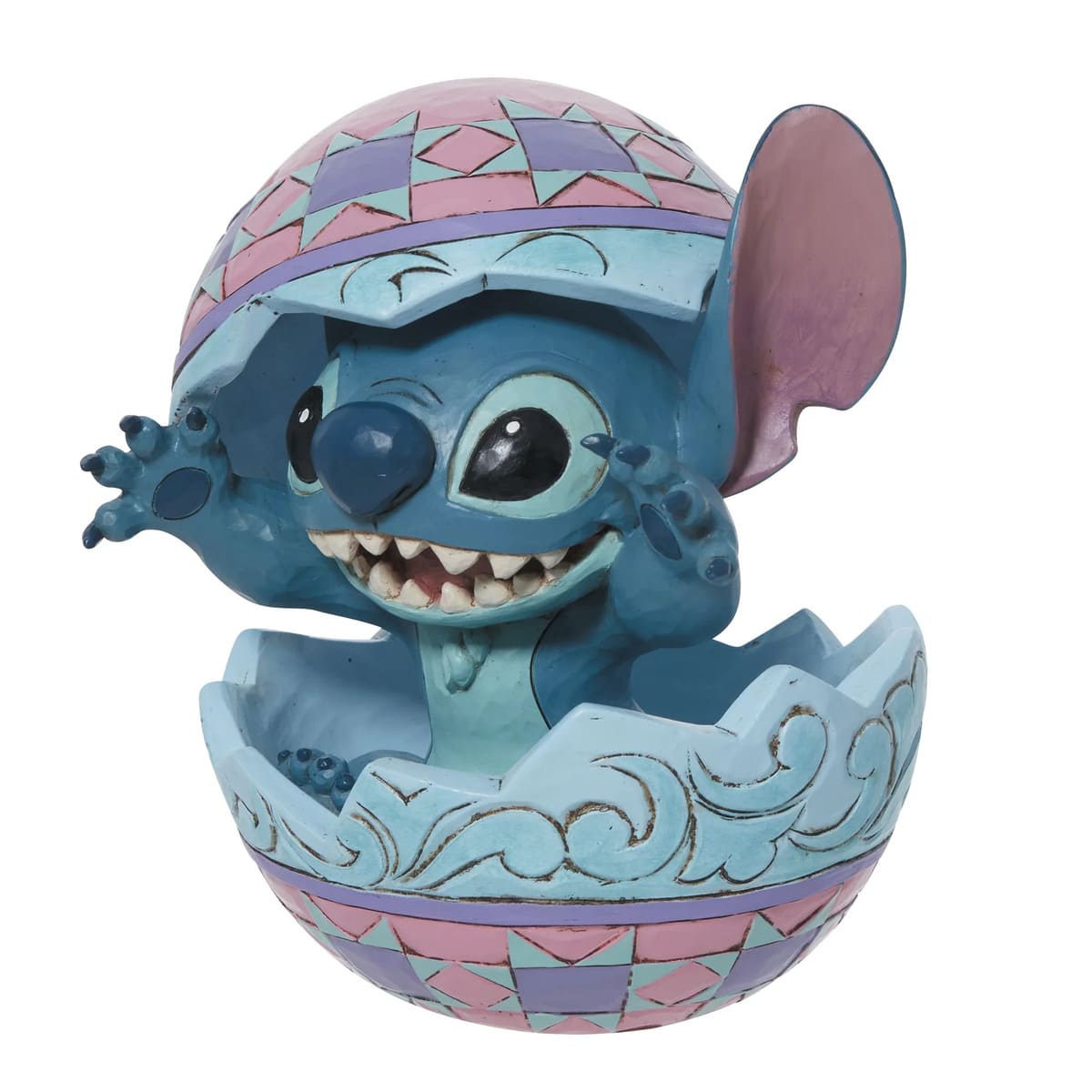 In diesem Frühling schlüpft etwas, und es ist kein Küken! Stitch, der liebenswerte Außerirdische, schlüpft aus einer Eierschale und wünscht Ihnen und Ihren Lieben fröhliche Ostern. Der farbenfroh gemusterte Stitch von Jim Shore feiert das 20-jährige Jubiläum von „Lilo und Stitch“ und bringt mit seiner fröhlichen Ausstrahlung den Charme des Films in diese festliche Figur.