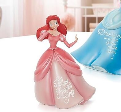 Arielle, die bezaubernde Meerjungfrau, erstrahlt in dieser eleganten Figur in ihrem traumhaften rosa Kleid. Ein besonderes Detail macht sie noch magischer: Im unteren Bereich ihres Kleides ist in weißer Schrift eingraviert – "Let your heart sing".