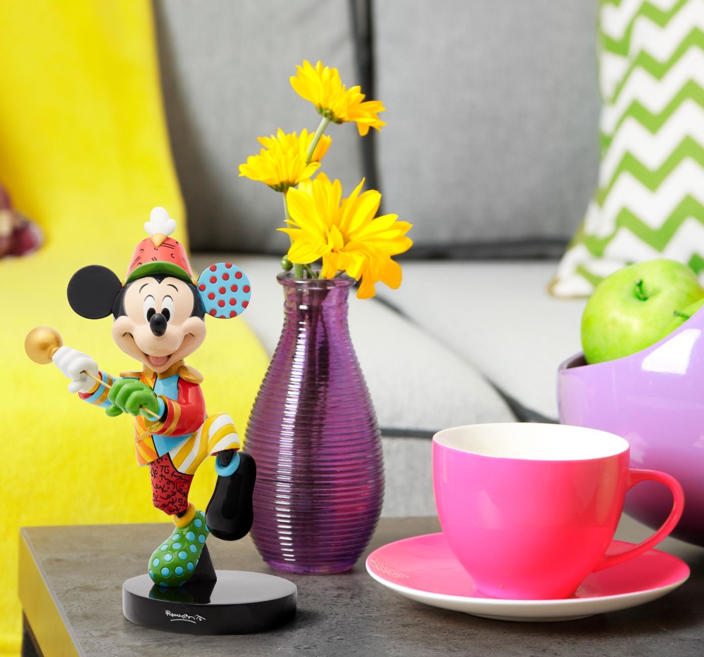- Pop-Art-Design: Brittos typischer Einsatz von leuchtenden Farben und verspielten Mustern verleiht dem klassischen Look von Mickey einen modernen, frischen Touch.