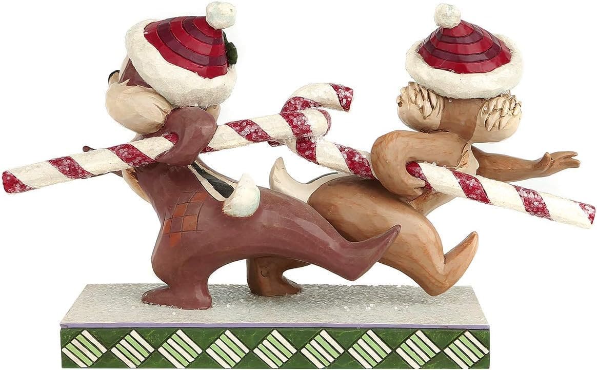 Die berühmten streitbaren Streifenhörnchen Chip & Dale, oder wie sie liebevoll auch genannt werden, Chip & Chap, zeigen sich in dieser bezaubernden Disney Traditions Figur von Jim Shore in einem besonders niedlichen Moment. Mit ihren Zuckerstangen ineinander verhakt, geraten die beiden in typisch chaotischer Manier durcheinander. Während sie aneinander vorbeilaufen, scheinen sie wohl unterschiedliche Dinge im Sinn zu haben – ein amüsantes Schauspiel, das die charakteristische Eigenart der beiden perfekt widerspiegelt.