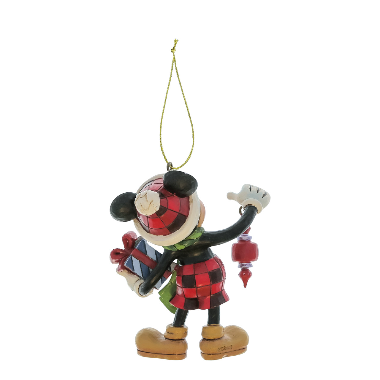 Diese süße Mickey Mouse Weihnachtsedition von Jim Shore läutet die Weihnachtszeit mit einem liebenswerten Lächeln ein. Mickey trägt eine Hose im Buffalo-Karo und eine passende Weihnachtsmütze, während er fröhlich ein Ornament und ein Geschenk präsentiert – eine wunderbare Darstellung des festlichen Zaubers.