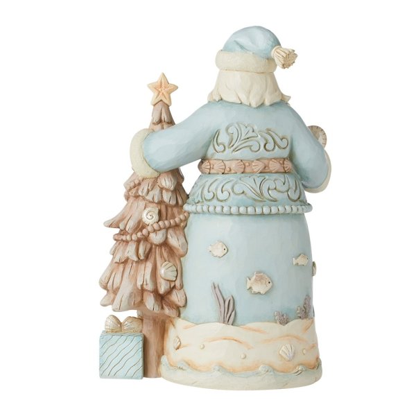 Mit der Coastal Collection bringt Jim Shore die festliche Weihnachtsfreude an den Strand. Dieser zauberhafte Weihnachtsmann trägt ein blaues Gewand, das mit Muscheln und Korallen verziert ist, und fügt dem traditionellen Weihnachtsdesign einen erfrischenden, maritimen Touch hinzu. In seinen Händen hält er einen Schnecke und einen Baum aus Treibholz, der die maritime Weihnachtsstimmung perfekt unterstreicht.