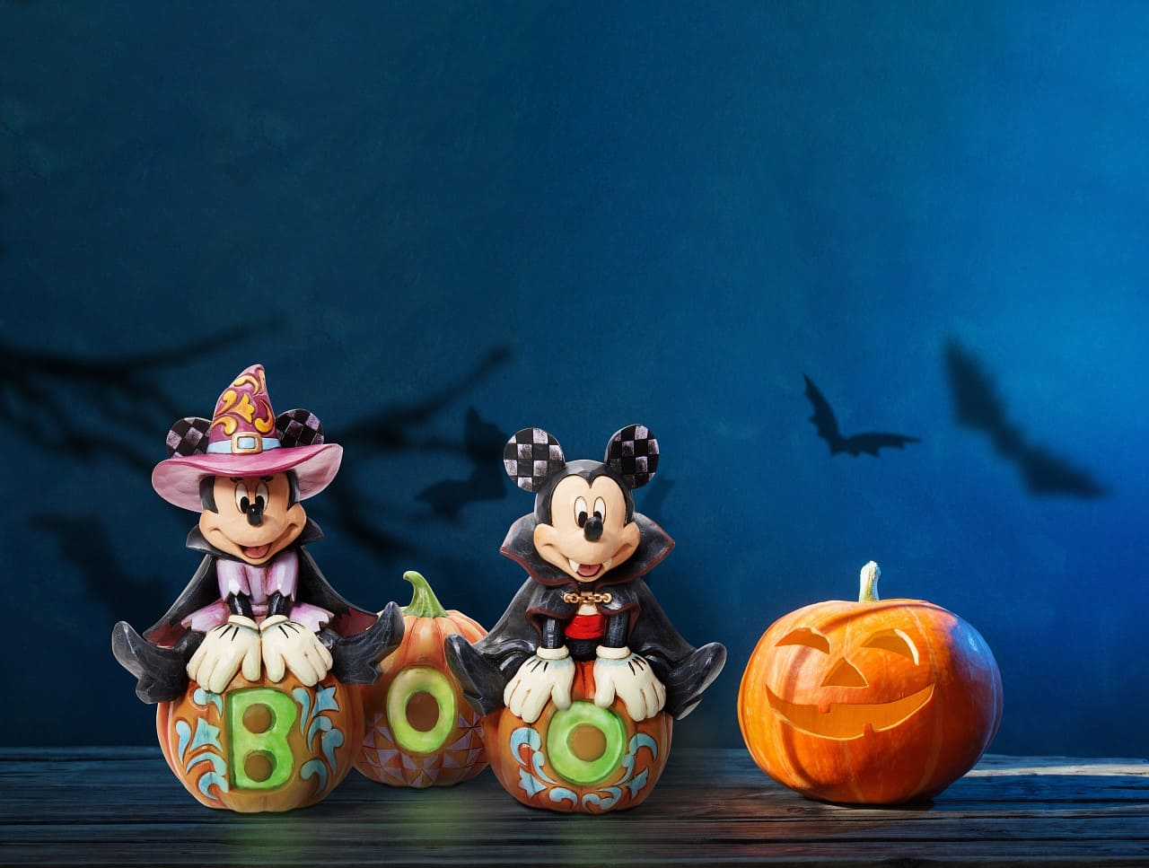 Dieses liebevoll gestaltete Sammlerstück bringt sowohl Halloween-Magie als auch die Unbeschwertheit von Mickey und Minnie in Ihr Zuhause.