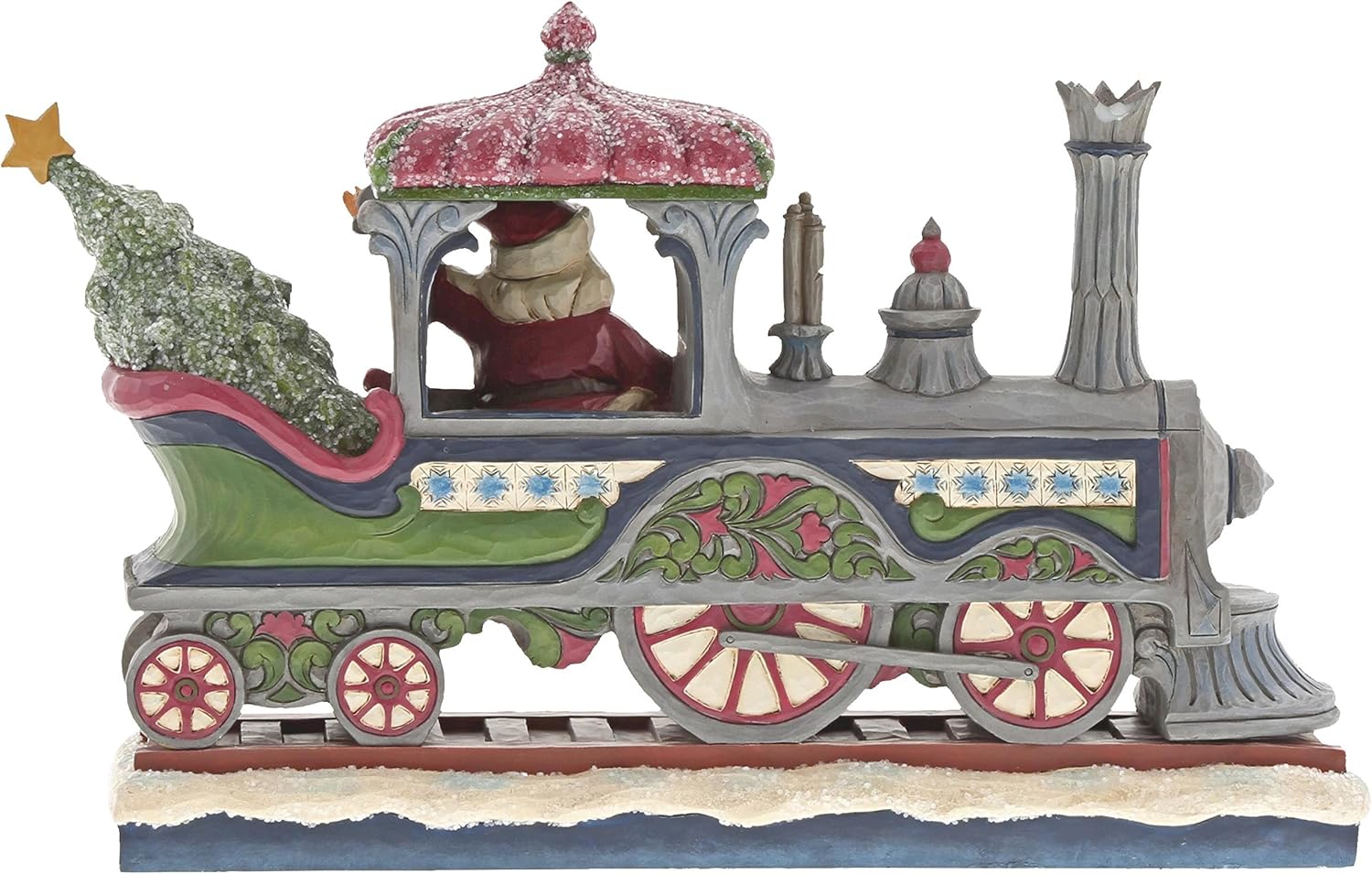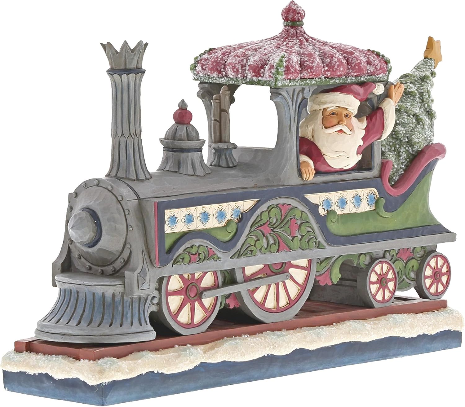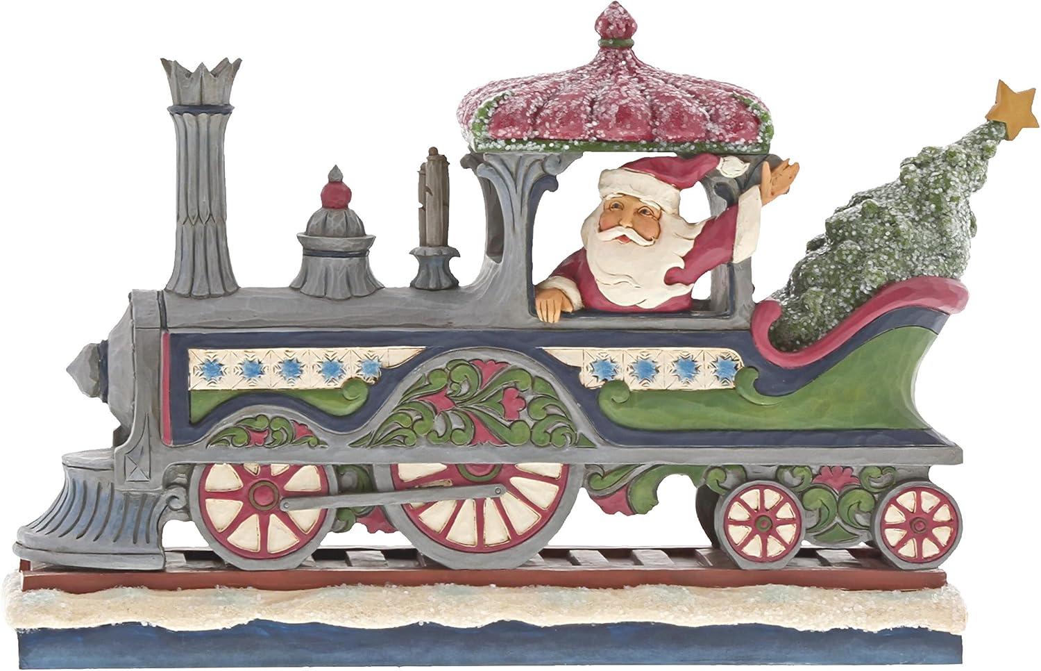 Dieser prächtige viktorianische Weihnachtsmann bringt festliche Nostalgie in Ihr Zuhause. Mit kunstvollen Details und einem Hauch von Magie fährt er in einer detailreichen Lokomotive aus dem 19. Jahrhundert, verziert mit schimmerndem Zuckerguss-Glitzer. Ein einzigartiges Sammlerstück aus der Jim Shore Heartwood Creek Kollektion.