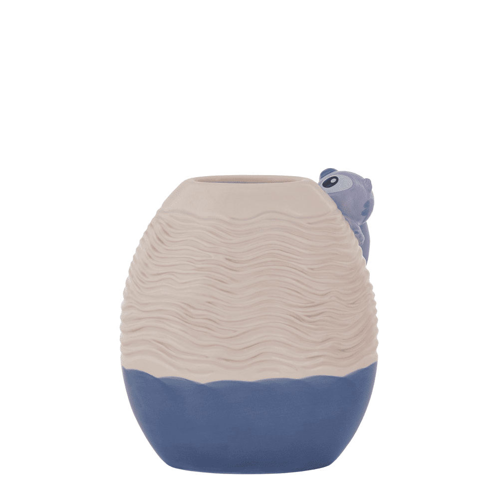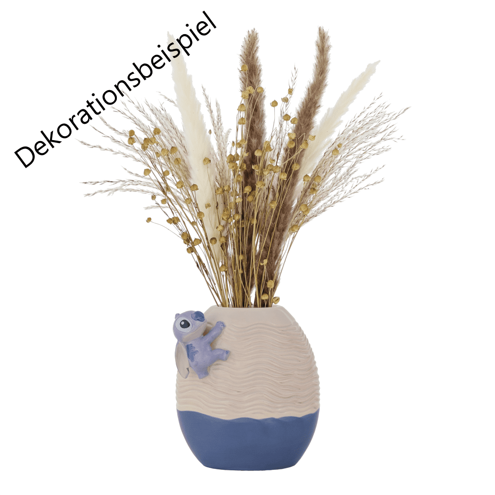 • Verspieltes Design: Geprägte Texturen und Stitch als kleine Figur, die seitlich an der Vase hängt
