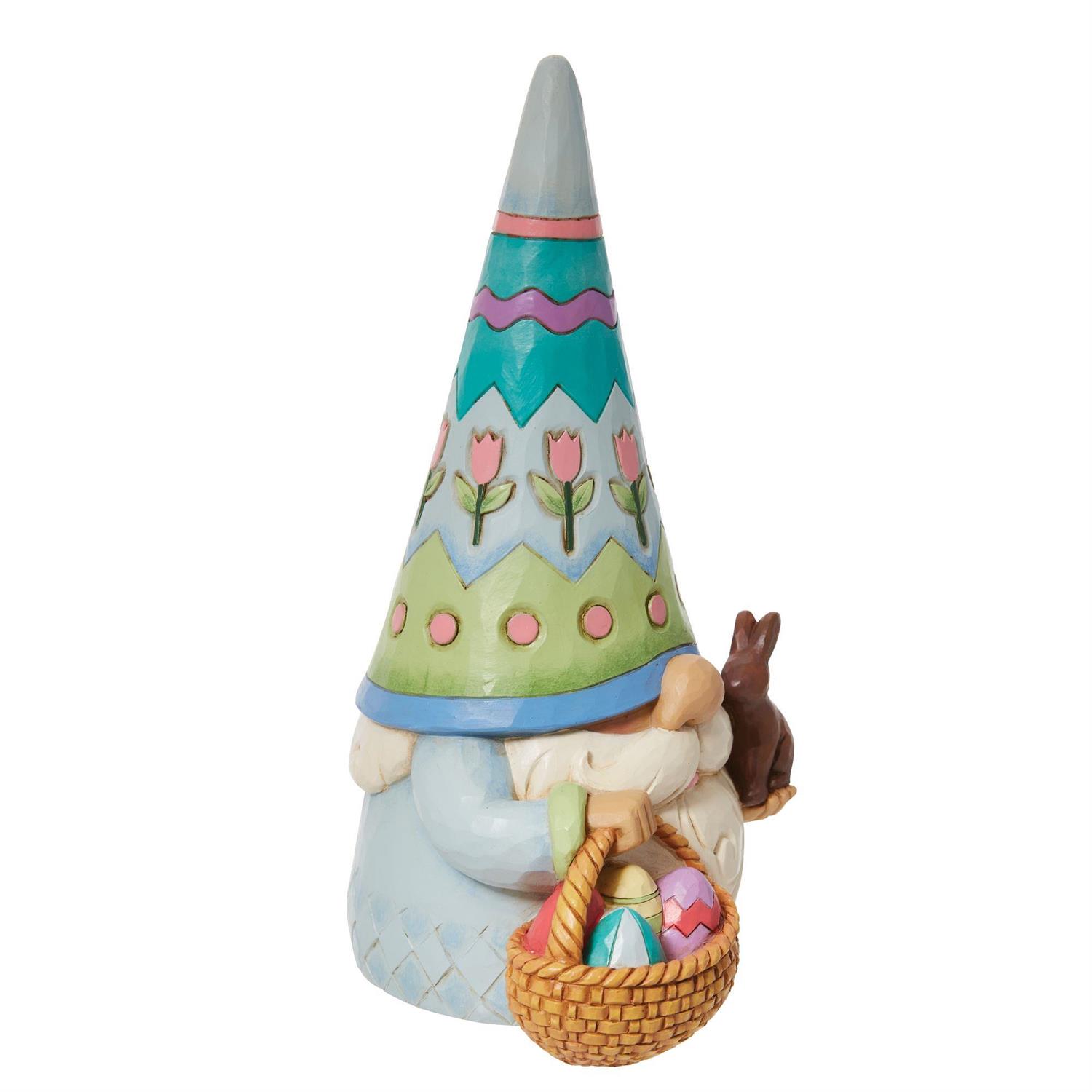 Dieser bezaubernde Osterwichtel aus der Jim Shore Heartwood Creek Kollektion bringt festliche Freude und Fröhlichkeit in Ihre Osterdekoration! Mit einem Korb voller Schokoladeneier in der einen Hand und einem kunstvoll gestalteten pastellfarbenen Spitzhut ist er ein wahrer Hingucker.