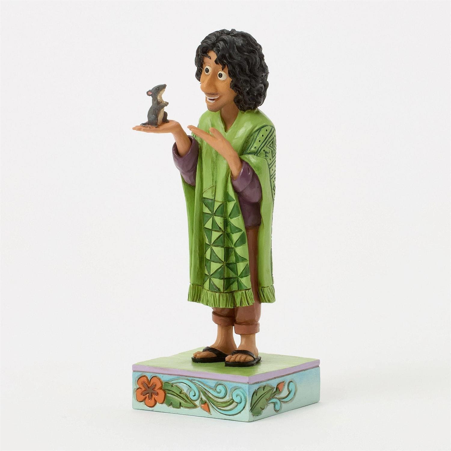 Mit dieser einfühlsamen Figur bringt Jim Shore die sanfte Seite von Bruno aus Encanto zum Vorschein – dem missverstandenen Onkel der Familie Madrigal. Bruno hält ein kleines Mäuschen in der Hand, während detailreiche Muster im beliebten Folk-Art-Stil von Jim Shore sowie sanfte Farben seiner Figur Wärme und Tiefe verleihen. Ein berührendes Sammlerstück für Fans des Disney-Films.