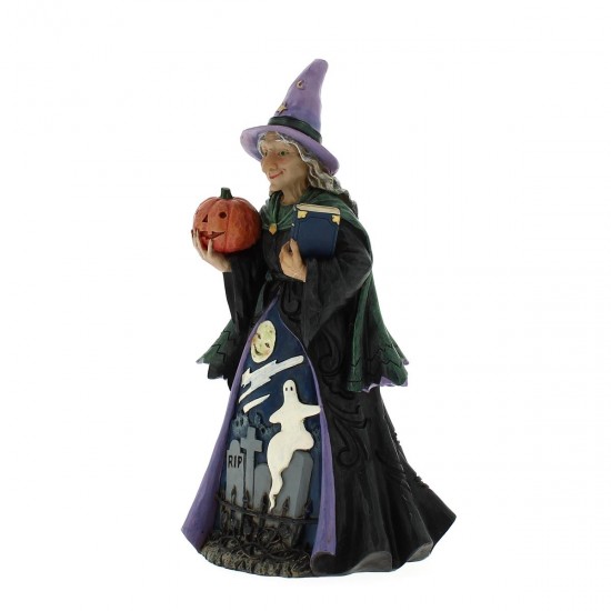 Bringen Sie ein Stück Halloween-Magie in Ihr Zuhause und lassen Sie sich von der Guten Hexe im Mondlicht verzaubern. Ein perfektes Sammlerstück für alle, die den Charme von Jim Shores Kunst und die Magie der Hexen lieben.