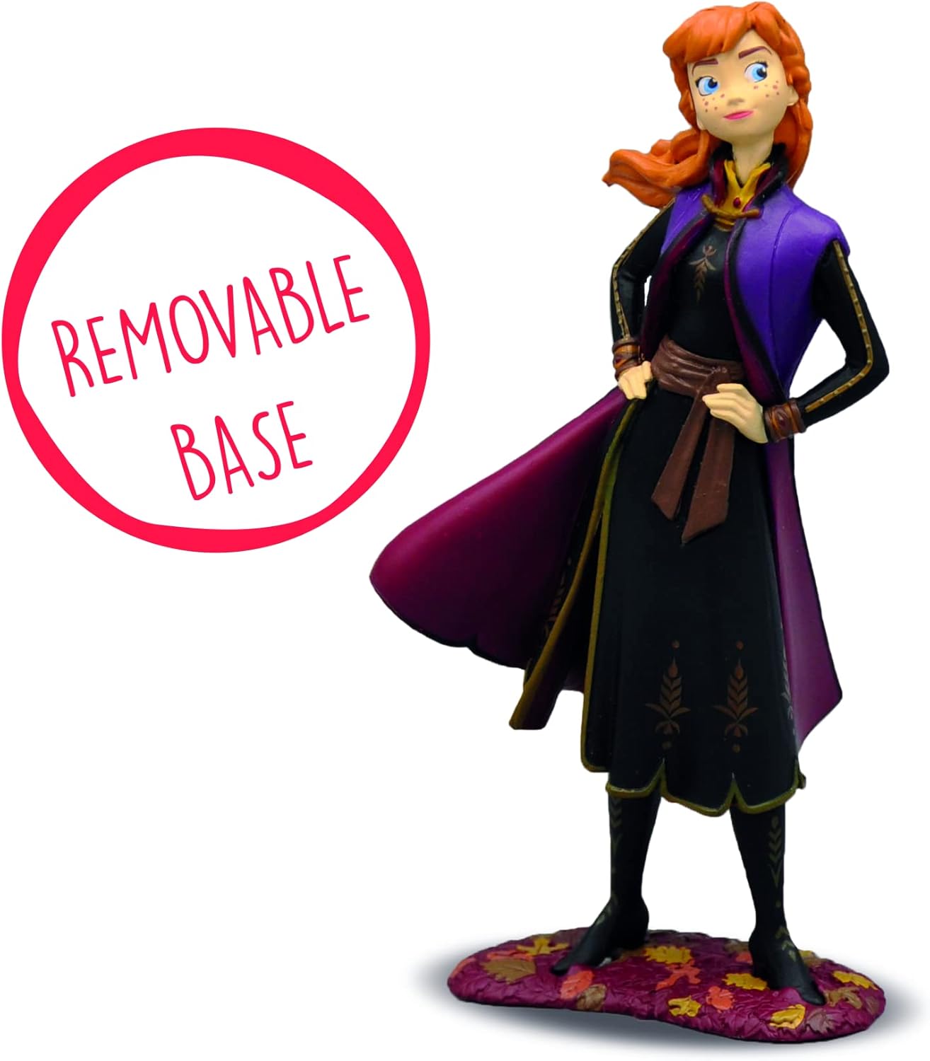 - Elegantes Design: Anna trägt ihr charakteristisches Outfit aus Frozen 2, bestehend aus einem schwarzen Rock, einer goldenen Schärpe und einem lila Umhang, das ihre königliche Eleganz und ihren starken Charakter unterstreicht.