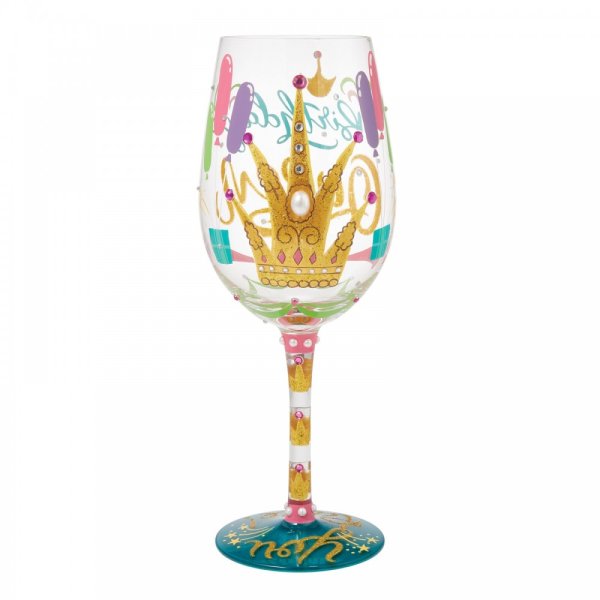 Das "Birthday Queen - Lolita Weinglas ist der perfekte Begleiter für die Geburtstagskönigin. Stoßen Sie auf das Geburtstagskind an und feiern Sie den besonderen Tag mit diesem handbemalten Weinglas von Lolita. Verziert mit Kronen, Sternen und einem Kaleidoskop aus leuchtenden Farben, ist dieses Glas mit Kristallen und Glitzer überzogen, um den Tag gebührend zu feiern. Es ist ein wahrer Hingucker und wird Ihre Geburtstagsfeier mit Stil und Glamour bereichern.