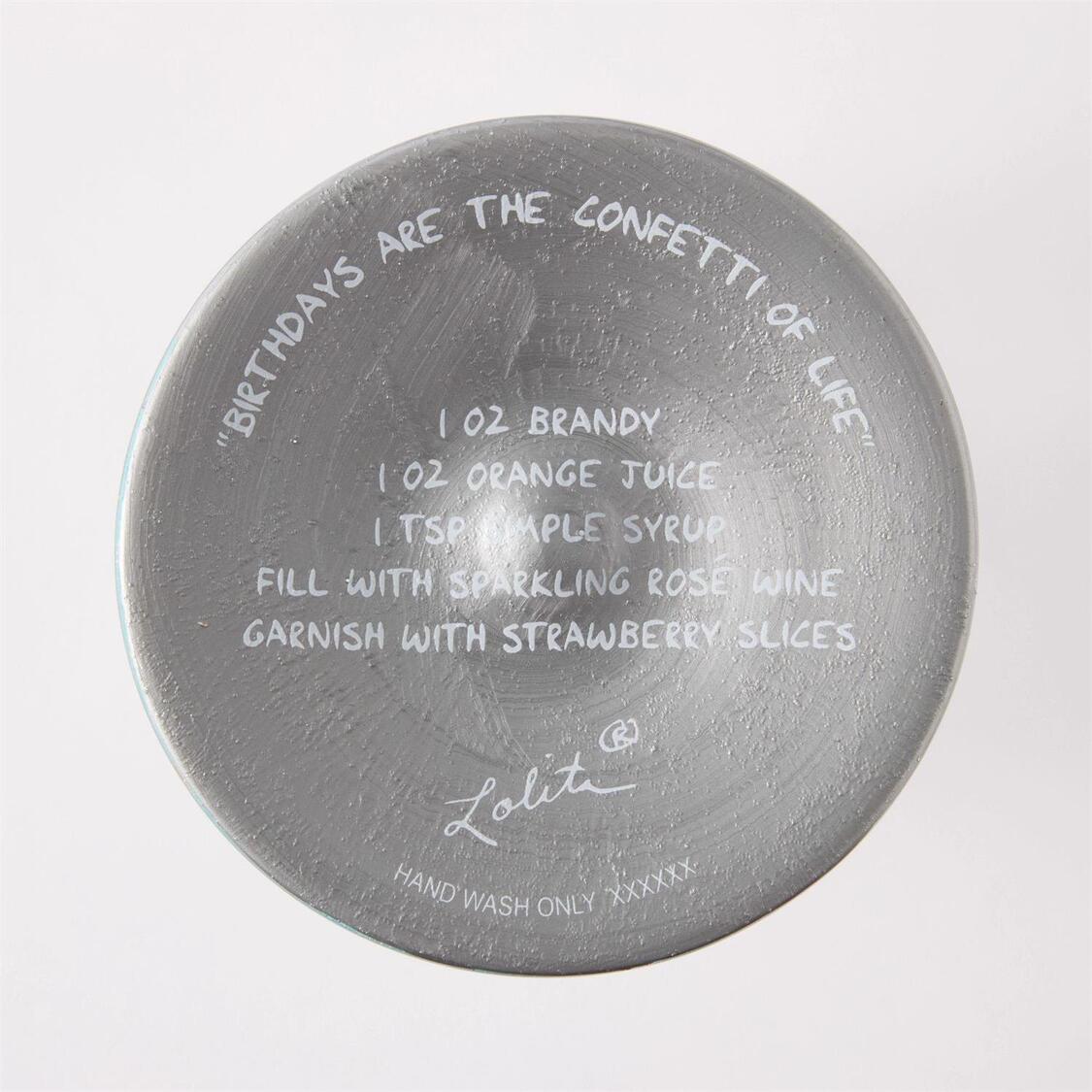 - Jedes Glas trägt ein einzigartiges Rezept oder das Designs by Lolita-Signaturzeichen auf der Unterseite