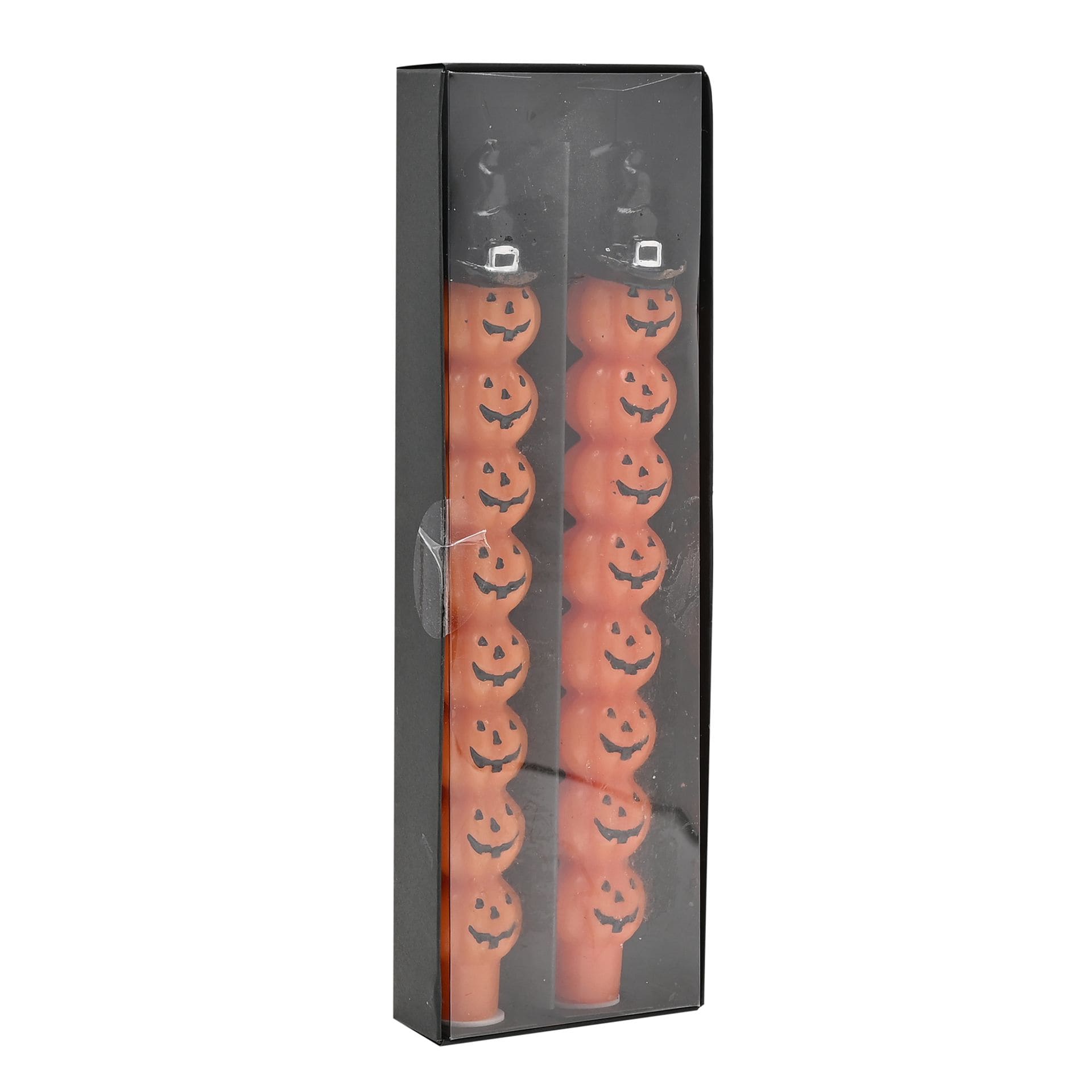 25 x 3,5 x 3,5 cm - Material: Wachs - Das 2er-Set Kürbis-Kerzen von Hocus Pocus Novelties ist eine bezaubernde Ergänzung zu den Halloween-Feierlichkeiten. Jede Kerze ist mit acht Kürbisgesichtern verziert. An der Spitze krönt ein schwarzer Hexenhut die Kerze, der ihr einen Hauch von Zauber verleiht und das bezaubernde Design vervollständigt. Erhellen Sie gespenstische Soireen mit dem warmen, flackernden Schein dieser Kerzen. Ideal für den Kaminsims oder als Tafelaufsatz für eine Halloween-Tafel. Fast zu schade zum Anzünden.