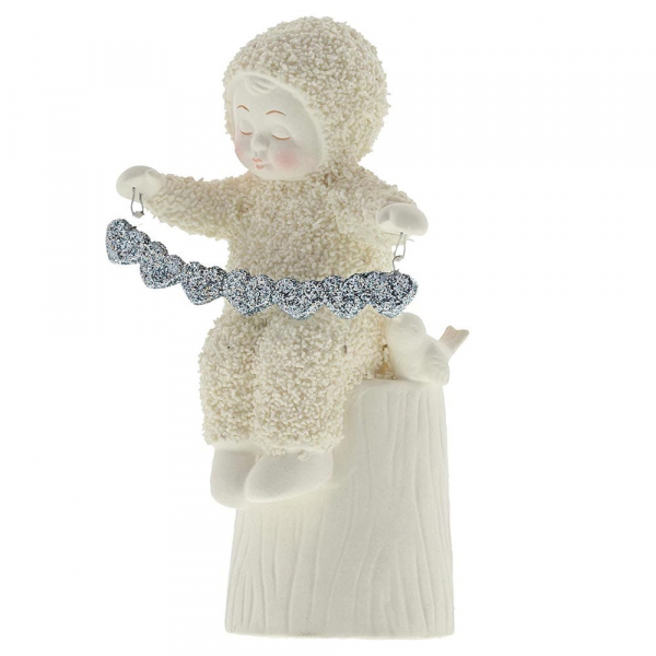 13 x 6,5 x 6,5 cm - Dieses Snowbaby hat so viel Liebe zu geben. Auf einem Baumstumpf sitzend hält es eine Herzchengirlande in Händen während die Vöglein zusehen.