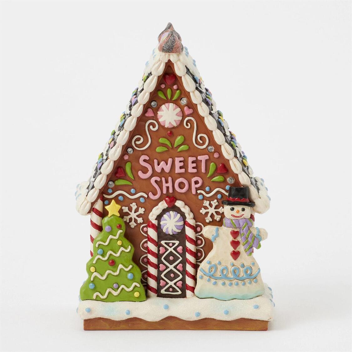 - Jim Shore Heartwood Creek „Life is What You Bake It“ Gingerbread Christmas Kollektion, Sweet Shop LED Figur