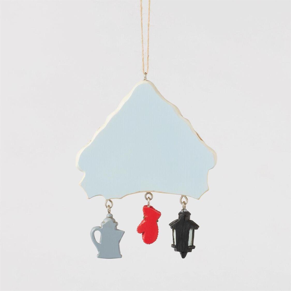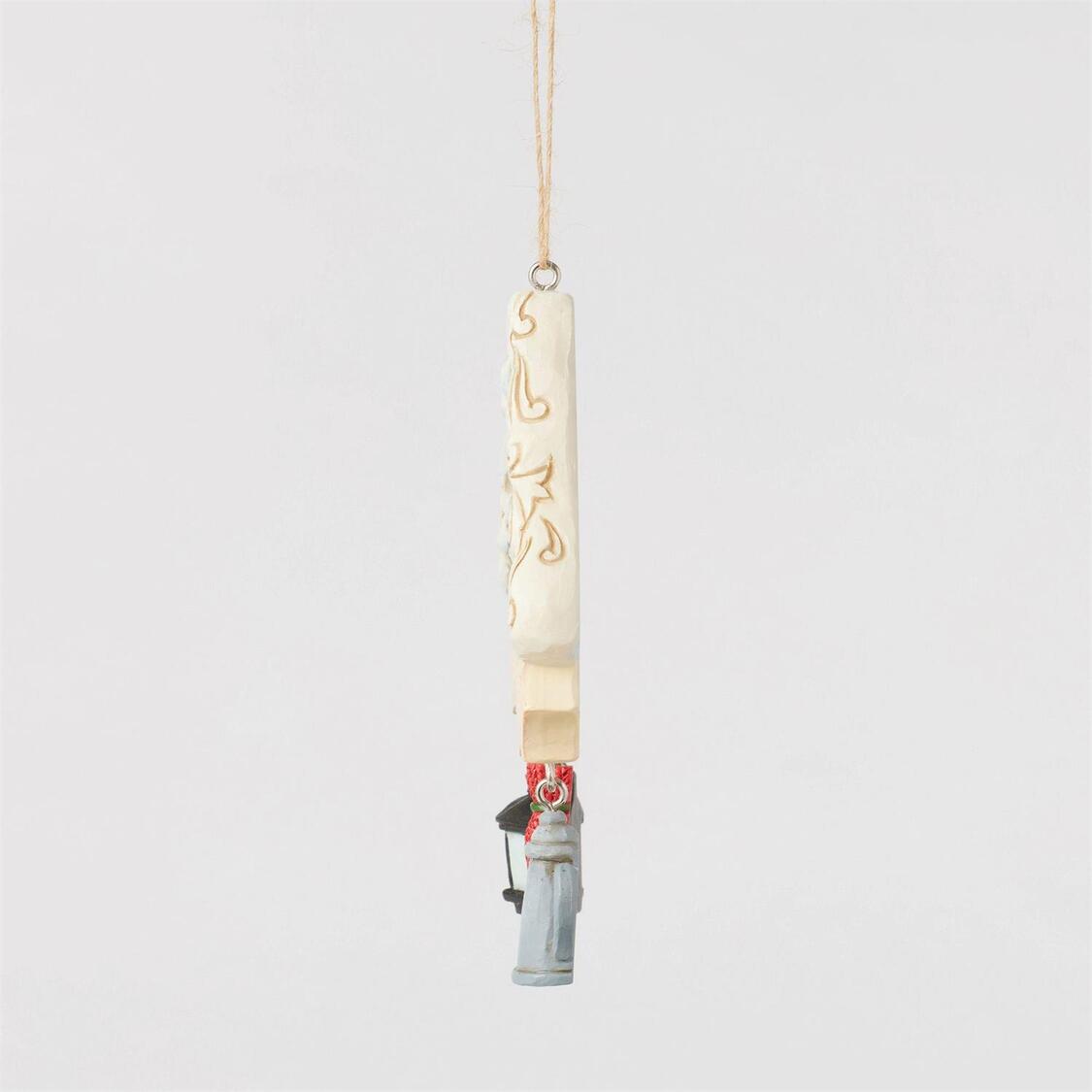 Dieser entzückende Jim Shore Weihnachtsbaumanhänger aus der „Christmas at the Lodge“ Kollektion zeigt das Dach einer gemütlichen Hütte, das die Szene eines Bären zeigt, der sich vor einem Hintergrund aus Bäumen und Bergen bewegt. Unter dem Dach hängt ein charmantes Schild mit der Aufschrift „Merry Christmas“, während eine Laterne, ein Kännchen und ein Handschuh das Bild vervollständigen.