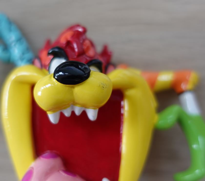 Trotz der kleinen Makel ist diese Figur ein dynamisches und verspieltes Sammlerstück, das die wilde und ungebändigte Natur des Tasmanischen Teufels in einer modernen Pop-Art-Darstellung einfängt