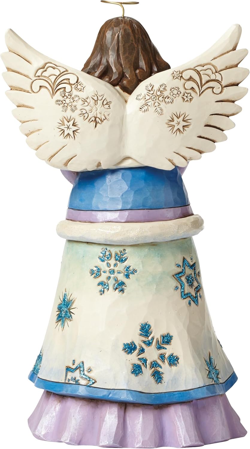 - Design: Winterengel in einem warmen Mantel, verziert mit Schneeflockenmustern auf ihrem Kleid