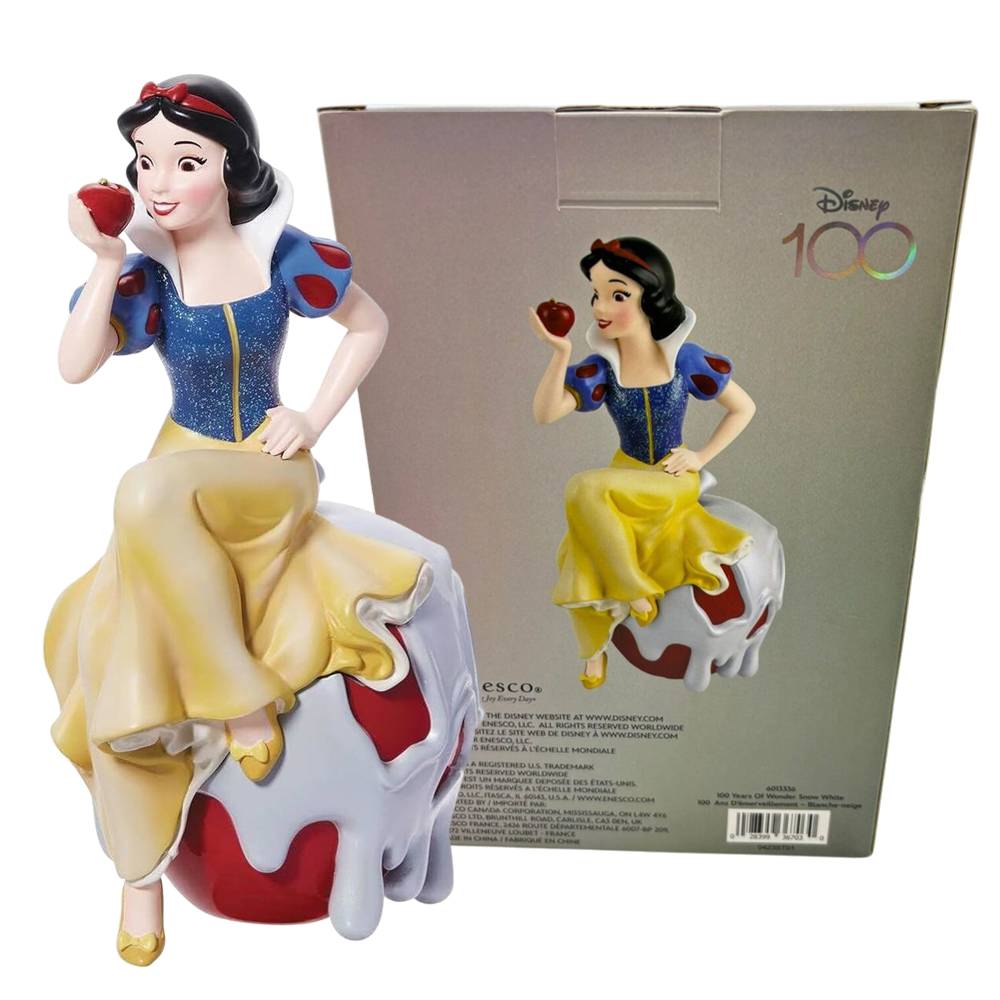 Feiern Sie mit dieser bezaubernden Schneewittchen-Figur die Vergangenheit, Gegenwart und Zukunft von Disneys 100. Geburtstag. Schneewittchen sitzt auf einem silbernen, vergifteten Apfel und hält einen roten Apfel in der Hand.