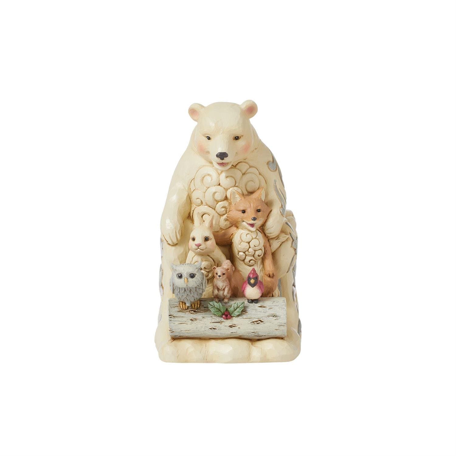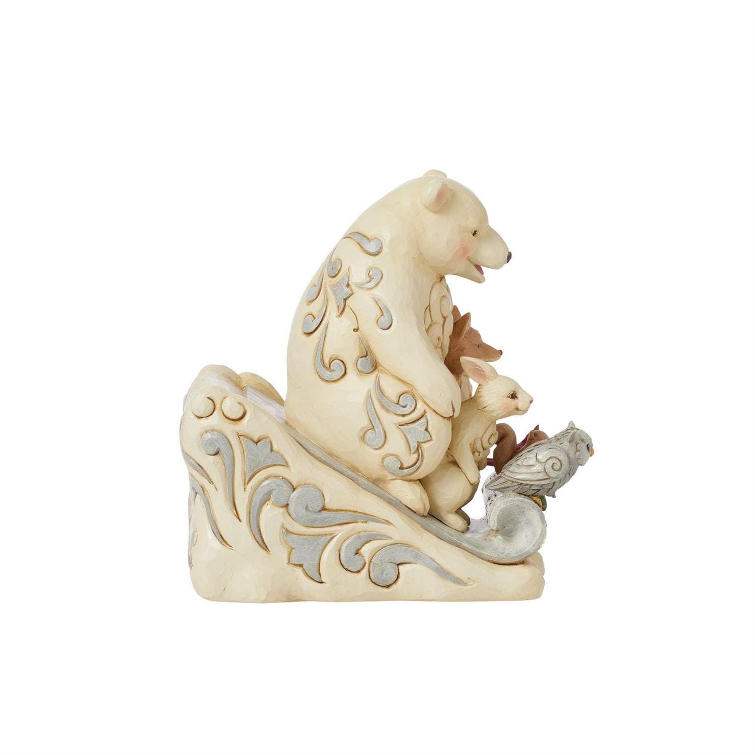 Erleben Sie den Zauber des Winters mit dieser bezaubernden Jim Shore-Figur, inspiriert vom Wald. Eine Gruppe von weißen Woodland-Tieren – ein Eisbär, ein Fuchs, ein Kaninchen, eine Eule, ein Kardinal und ein Eichhörnchen – teilt sich einen Rodelschlitten und genießt eine fröhliche Fahrt im Schnee. Diese charmante Szene fängt die Wärme und Freude der Wintermonate ein, besonders wenn man sie mit Freunden verbringt.