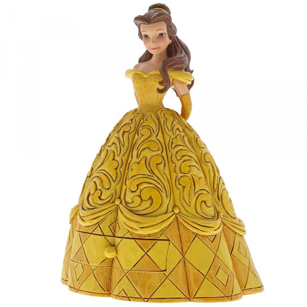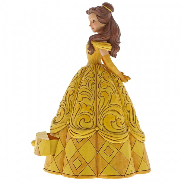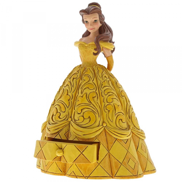 Diese elegante Figur von Belle im strahlend gelben Kleid gehört zur Treasure Keeper Kollektion von Jim Shore und vereint meisterhaft Stil und Funktion. In ihrem wunderschönen Kleid verbirgt sich eine praktische versteckte Schublade, die perfekt dazu geeignet ist, Ihr wertvollstes Schmuckstück sicher und stilvoll zu verwahren. Öffnen Sie einfach die Schublade und lassen Sie sich von der zauberhaften Kombination aus Kunst und Praktikabilität begeistern.