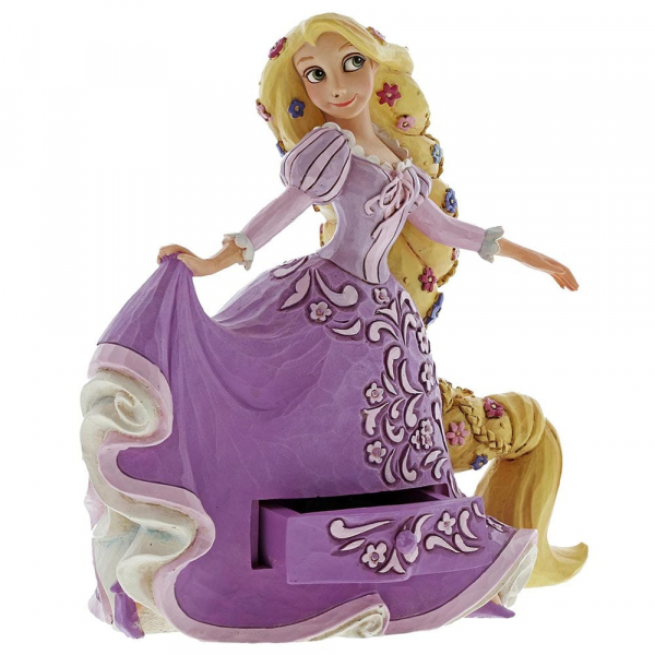 Rapunzel im bezaubernden rosa Kleid ist Teil der Treasure Keeper Kollektion von Jim Shore und kombiniert Eleganz mit praktischer Aufbewahrung. Diese liebevoll gestaltete Figur hat eine versteckte Schublade, die perfekt dazu geeignet ist, Ihre wertvollsten Schmuckstücke sicher und stilvoll zu bewahren. Öffnen Sie einfach die Schublade, um eine neue, funktionale Art der Schmuckaufbewahrung zu entdecken.