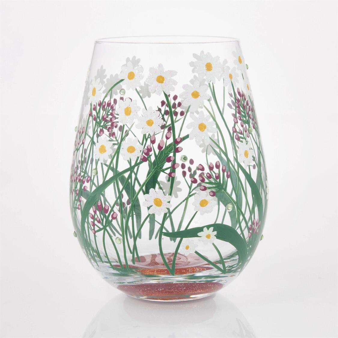 Betreten Sie einen blühenden Garten mit diesem Lolita Stemless Weinglas, das zarte Gänseblümchen und rote Knospen in einer eleganten Musterung zeigt – ein wahres Meisterwerk der Natur. Der mühelose Charme und das lebendige Wachstum der floralen Motive bringen den ruhigen Geist des Gartens in jeden Schluck.