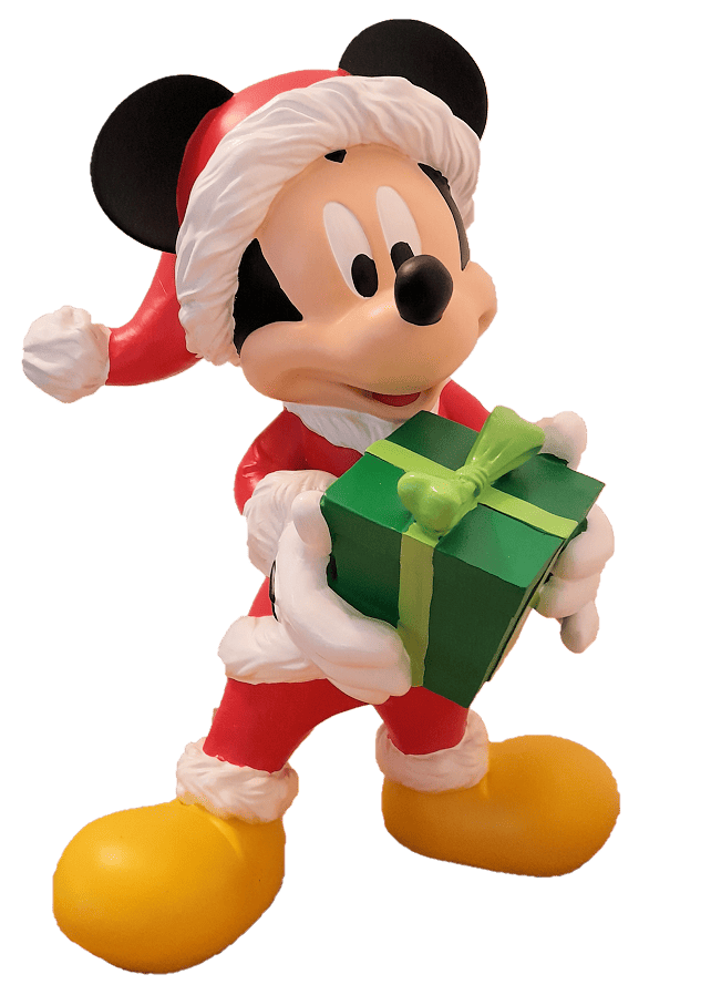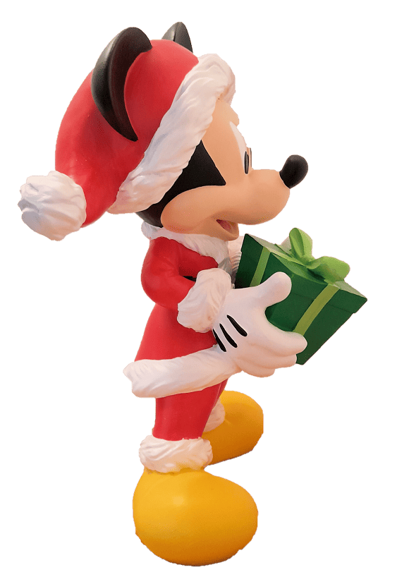 • Micky Maus mit Weihnachtsmütze und Geschenk