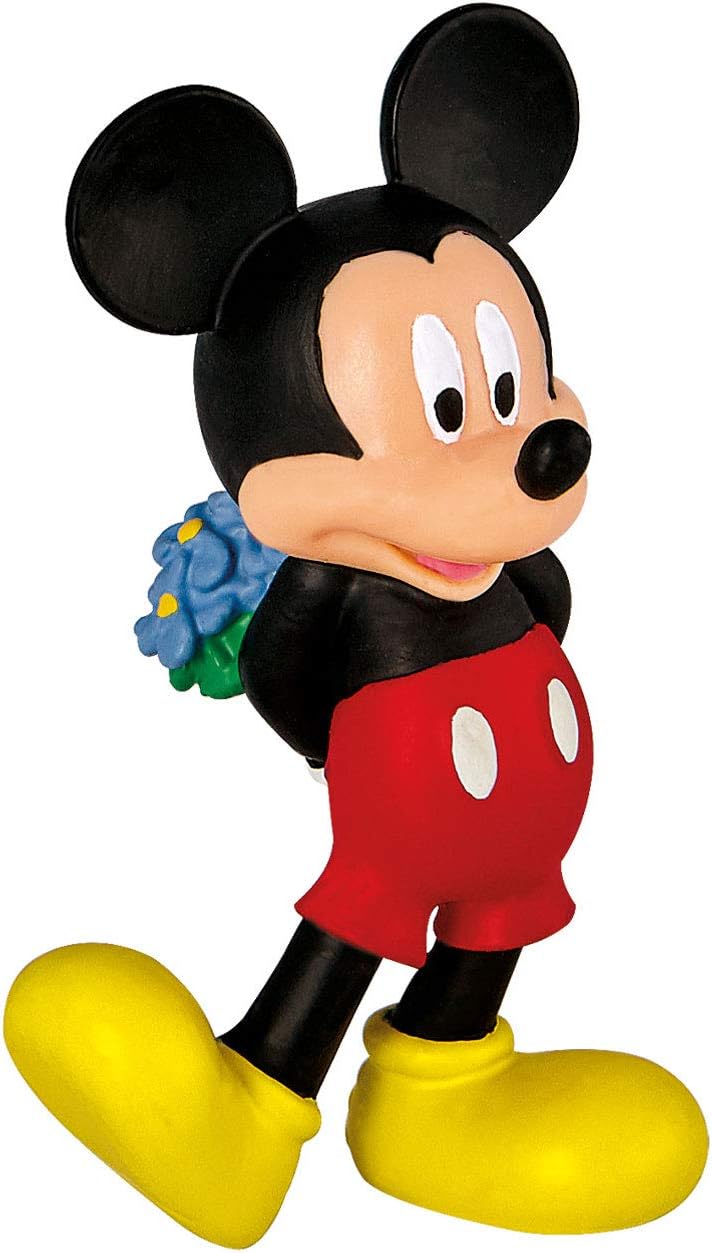 Dieses bezaubernde Set von Bullyland zeigt die beiden Disney-Lieblinge Micky und Minnie Maus in einer romantischen Pose. Micky hält stolz einen Blumenstrauß hinter seinem Rücken, während Minnie kokett in ihrem blauen Kleid mit rosa Schuhen und einer Schleife lächelt. Gemeinsam sind sie das perfekte Paar und ein wunderschönes Symbol der Liebe, das jede Sammlung bereichert.