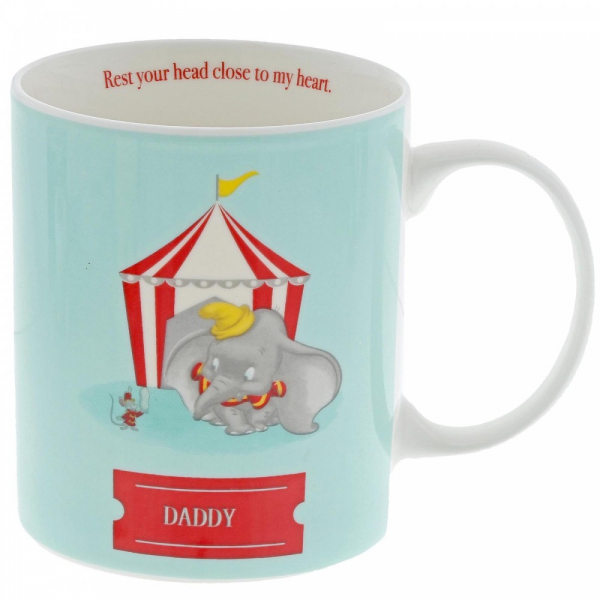 - Papa-Becher: Zeigt Dumbo zusammen mit seinem besten Freund Timothy, was die besondere Bindung zwischen Vater und Kind widerspiegelt. Auch hier ist ein Zitat aus "Baby Mine" zu finden.