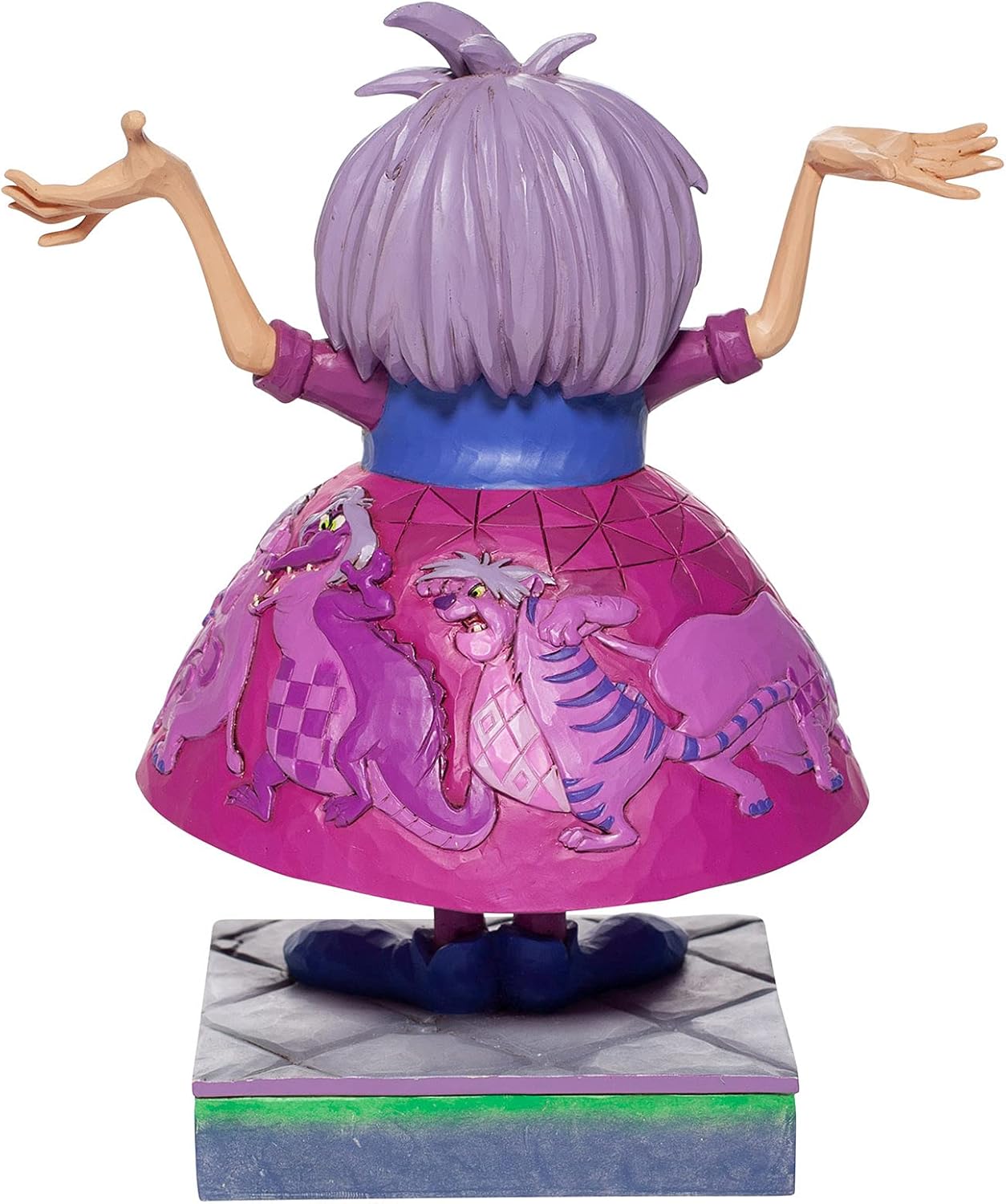 Madam Mim, die Erzfeindin von Merlin, bringt ihre magische Zauberkraft direkt in Ihr Zuhause! Feiern Sie die Nostalgie des 1963 erschienenen Walt Disney Klassikers Merlin, der Zauberer mit dieser faszinierenden Figur. Madam Mim, in ihrem auffälligen purpurroten Kleid und lilafarbenen Oberteil, das perfekt zu ihren lila Haaren passt, ist ein wahres Meisterwerk der Zauberei. Ihr Kleid ist mit Drachen verziert, die von Flammen umgeben sind – ein atemberaubendes Detail, das ihre feurige Persönlichkeit unterstreicht.