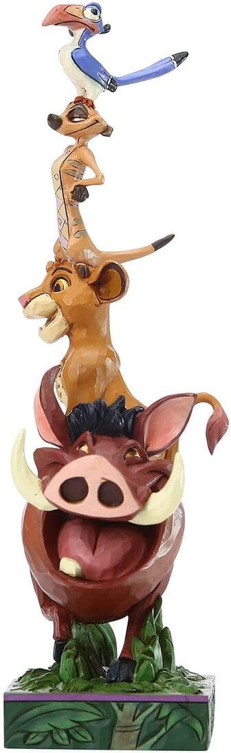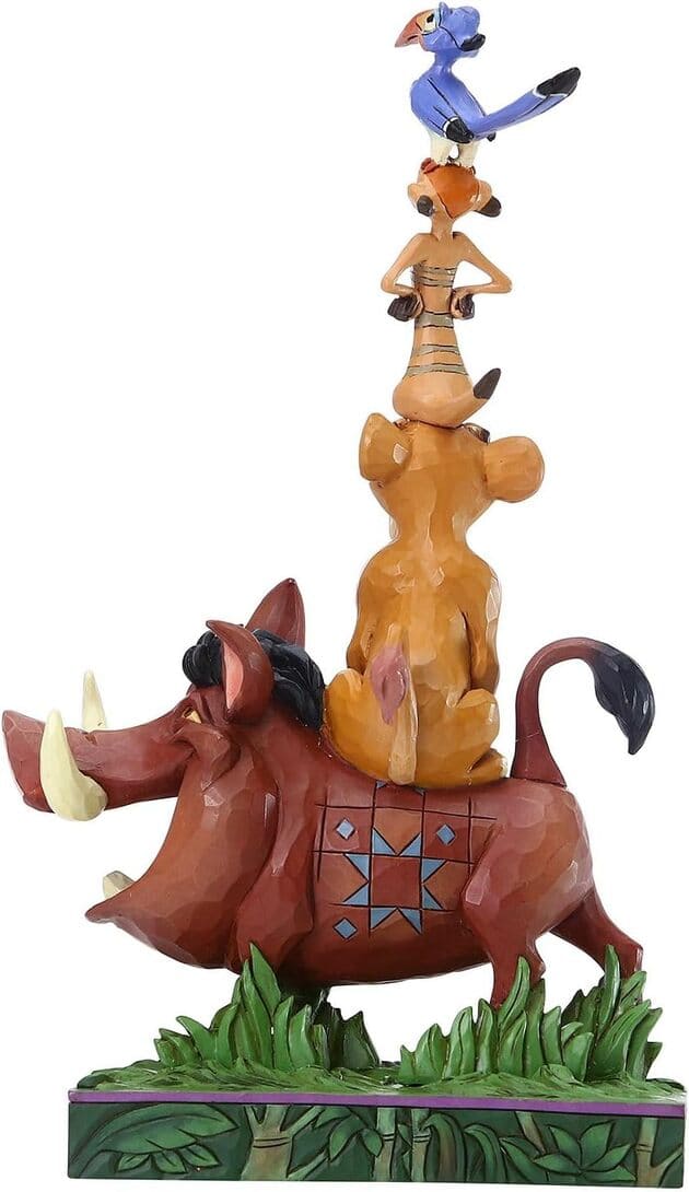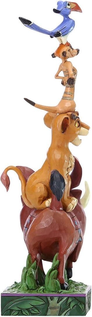 Diese Disney Traditions Figur von Jim Shore bringt Fröhlichkeit und Lebensfreude in Ihr Zuhause. Simba kann es kaum erwarten, König zu werden, und so bauen Pumba, Timon, Simba und Zazu voller Freude einen Freundschaftsturm. Die vier Freunde tragen ein breites Lächeln im Gesicht und spiegeln in dieser Szene die enge Bindung und den Spaß wider, den sie miteinander teilen. Die Figur ist im klassischen Volkskunst-Stil von Jim Shore gestaltet und fängt die Wärme und den Humor aus Der König der Löwen perfekt ein.