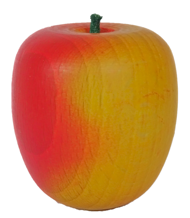 - Design: Gelb-roter Apfel in 3D-Form mit natürlichem Holzton