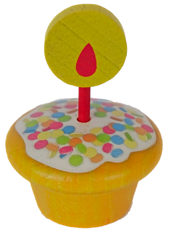 Produktinformationen "Geburtstagsmuffin, gelb mit Streuseln - Steckfigur für den großen Kerzenring von Sebastian Design"