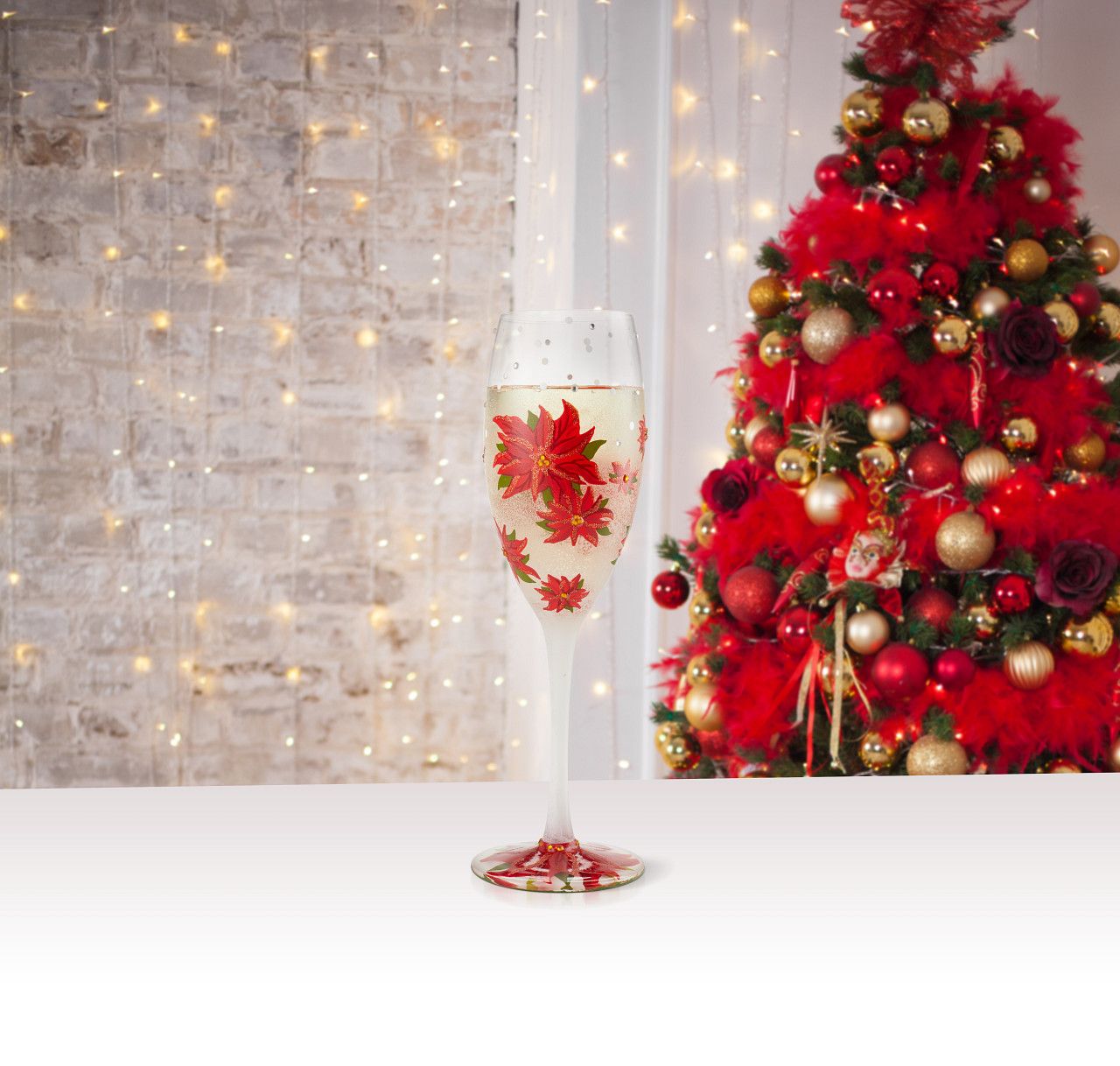 Produktinformationen "Prosecco-Glas - Poinsettias In the Snow / Weihnachtssterne im Schnee Sektglas - Lolita Prosecco 6004438"