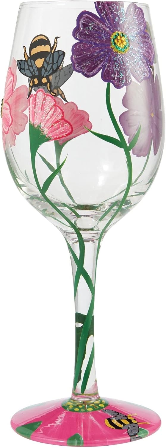 Bringen Sie ein Stück Natur auf Ihren Tisch mit dem Lolita Weinglas - My Drinking Garden. Dieses wunderschöne Glas ist von Hand bemalt und verziert mit einer zauberhaften Blumenpracht in Rosa und Lila, die von funkelndem Glitzer und kleinen Bienen begleitet wird – eine perfekte Hommage an den Frühling und die Schönheit des Gartens. Das Glas wird in einer dekorativen Geschenkschachtel geliefert - mit Weinrezept