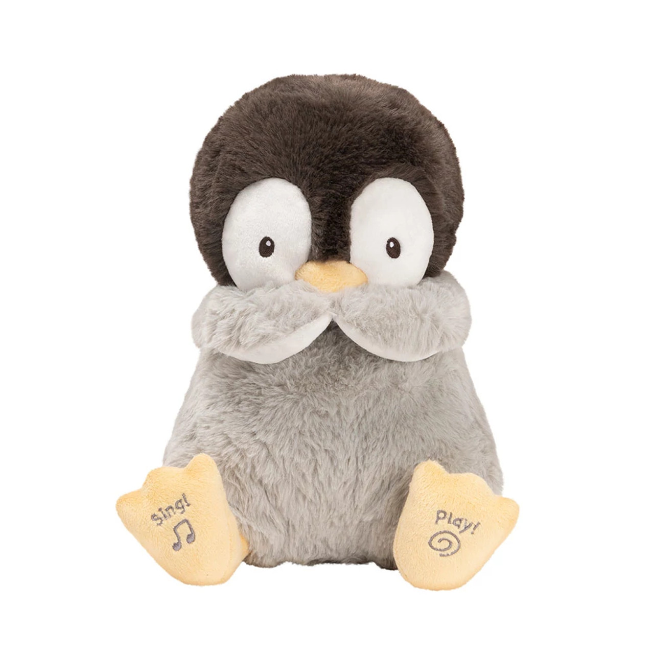 Höhe: 27 cm x 21 cm x 18,5 cm - Material: Stoff / Kissy der Pinguin ist der neueste Zuwachs in der GUND Animated Plush Familie. Dieser supersüße Pinguin singt zur Melodie von "Frere Jacques" und pustet dabei Küsse. Die kleinen Flossen bewegen sich im Takt der Musik zum Schnabel, um Ihnen Küsse zuzupusten. Kissy spielt auch ein süßes Kuss-Spiel. Kissy ist für Kinder ab 10 Jahren geeignet, kann auf der Oberfläche gewaschen werden und benötigt 3AA-Batterien, damit das Spiel beginnen kann. Ausgestellt in einer offenen Schachtel, damit jeder sehen kann, wie wunderbar sie ist. Kissy singt sowohl auf Französisch als auch auf Englisch. Dies kann auf der Unterseite des Produkts geändert werden, Option 1 ist Englisch, Option 2 ist Französisch.