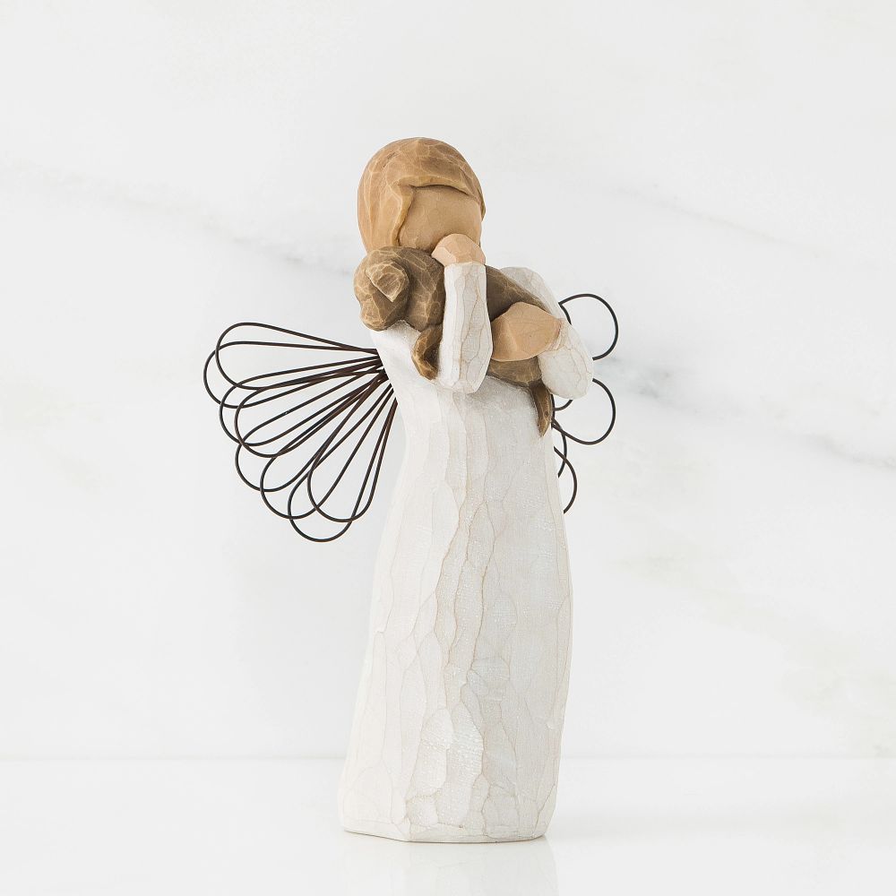 Der Angel of Friendship - Engel der Freundschaft von Willow Tree zeigt einen Engel, der liebevoll einen Hundewelpen in den Armen hält. Diese Figur verkörpert die tiefe Bedeutung von Freundschaft und Zuneigung – ein Symbol für die Wärme, die Fürsorge und die Treue, die wahre Freunde füreinander haben. Der Engel ist eine wunderschöne Geste für jene, die den Geist der Freundschaft teilen und immer füreinander da sind.