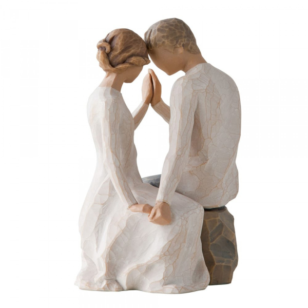 Die „Around You“-Figur von Willow Tree fängt die zarte Intimität und das Kribbeln einer jungen Liebe ein. Sie zeigt ein Paar, das sich gegenüber sitzt, die Köpfe und Hände zueinander geneigt, und verkörpert die Schmetterlinge im Bauch, die Unsicherheit und die besondere Chemie, die entsteht, wenn man in der Nähe des geliebten Menschen ist. Dieses Kunstwerk erinnert daran, wie schön es ist, jemandem nahe zu sein, den man von Herzen liebt.