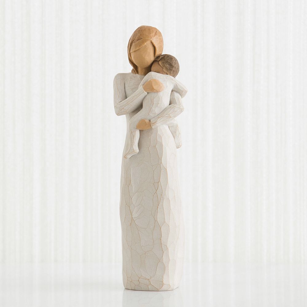 Die Child Of My Heart Figur von Willow Tree, entworfen von Susan Lordi, symbolisiert die bedingungslose Liebe und die tiefe Verbundenheit zwischen Eltern und ihren Kindern – sei es durch Geburt, Adoption oder in gemischten Familien. Diese Figur drückt die Freude und das Licht aus, das ein Kind in das Leben bringt und zeigt, wie Familie durch Liebe und Zusammenhalt geformt wird. „Ich wollte ein Werk schaffen, das von der reichen Vielfalt in unserer Kultur beeinflusst ist – mit multirassischen Familien, Adoptivfamilien und gemischten Familien. Meine Schwester Karen schrieb die Botschaft... es ist ein Liebesgedicht an ein Kind.“ – Susan Lordi
