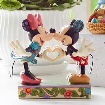Diese liebevoll gestaltete Figur von Jim Shore zeigt Mickey und Minnie Mouse in einem herzerwärmenden Moment: Nase an Nase formen sie mit ihren Händen ein Herz – ein wunderschönes Symbol für Liebe und Freundschaft. Teil der beliebten Disney Traditions Kollektion, kombiniert dieses Sammlerstück traditionelle Folk Art-Elemente mit moderner Disney-Magie. Jede Figur ist handbemalt und mit aufwendigen Details versehen – ein echtes Highlight für Disney-Fans und Sammler.