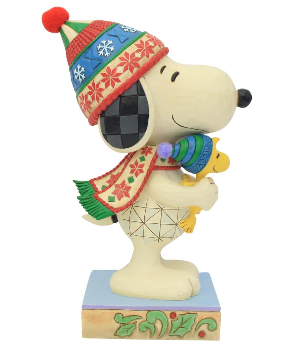 Snoopy umarmt seinen besten Freund Woodstock von ganzem Herzen – eine herzerwärmende Szene voller Liebe, Freundschaft und weihnachtlicher Freude. Diese Jim Shore Peanuts Figur verbindet die lebendige Farbgestaltung von Jim Shores Folk-Art-Stil mit liebevollen Details in den Wintermützen und festlichen Kleidungsstücken. In einer liebevollen Geste drückt Snoopy seinen Freund Woodstock eng an sich. Die Szene steht für Freundschaft, Zusammenhalt und Herzenswärme, passend zur Winter- und Weihnachtszeit. Perfekt für Peanuts-Fans, Jim-Shore-Sammler oder als liebevolles Geschenk, das Freundschaft und Wärme symbolisiert.