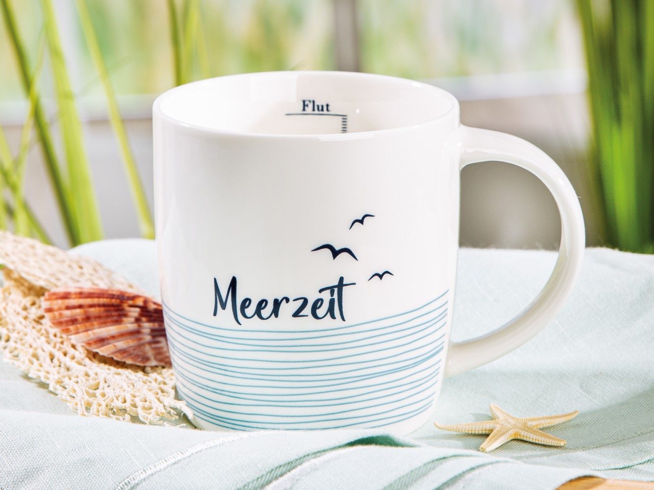 Der Becher „Meerzeit“ von Gilde Handwerk ist ein echtes Highlight für alle, die das Meer lieben. Mit dem stilvollen Schriftzug „Meerzeit“, den verspielten Möwen und den blauen Wellen bringt dieser Becher einen Hauch von Küstenflair in deinen Alltag. Besonders praktisch: Im Inneren des Bechers befindet sich eine Skala, die den Füllstand anzeigt – beschriftet mit „Ebbe“ und „Flut“ – und so für noch mehr maritimen Charme sorgt. Ideal für alle, die das Meer im Herzen tragen.