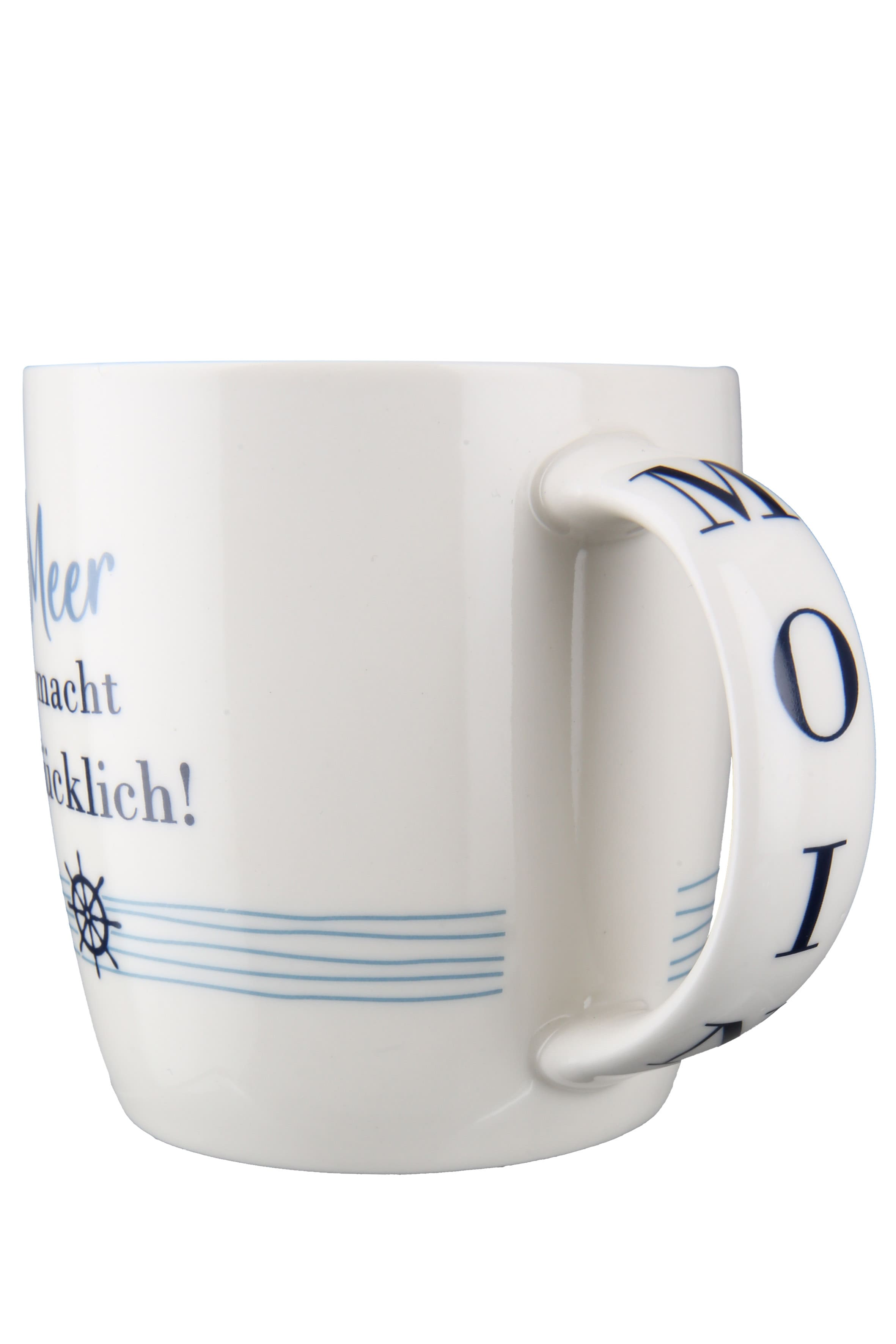 Produktinformationen "Becher Wellenglück mit Moin Schriftzug auf dem Henkel 51849 / Kaffeebecher - Tasse maritim - Meer macht glücklich"
