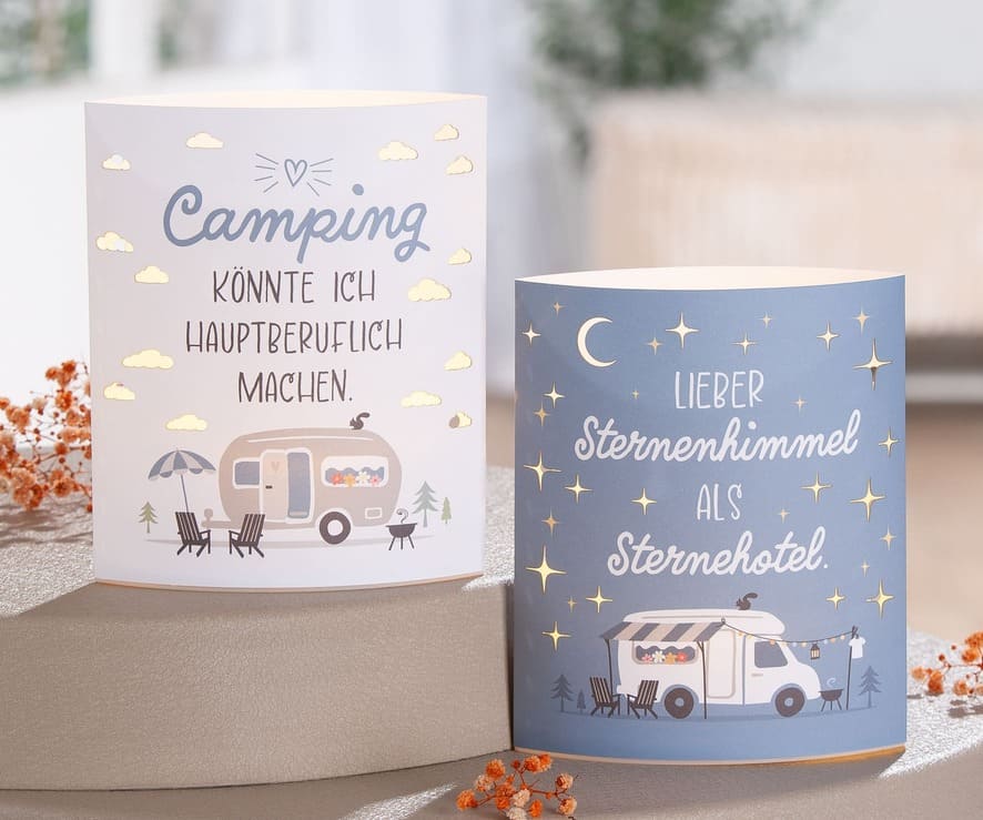 Ideal als stimmungsvolle Beleuchtung für den Garten, das Wohnzimmer oder den Campingplatz – die Camperglück LED Dekoleuchte ist das perfekte Accessoire für alle, die das Camperleben lieben und die Atmosphäre eines gemütlichen Campingabends ins Zuhause holen möchten.