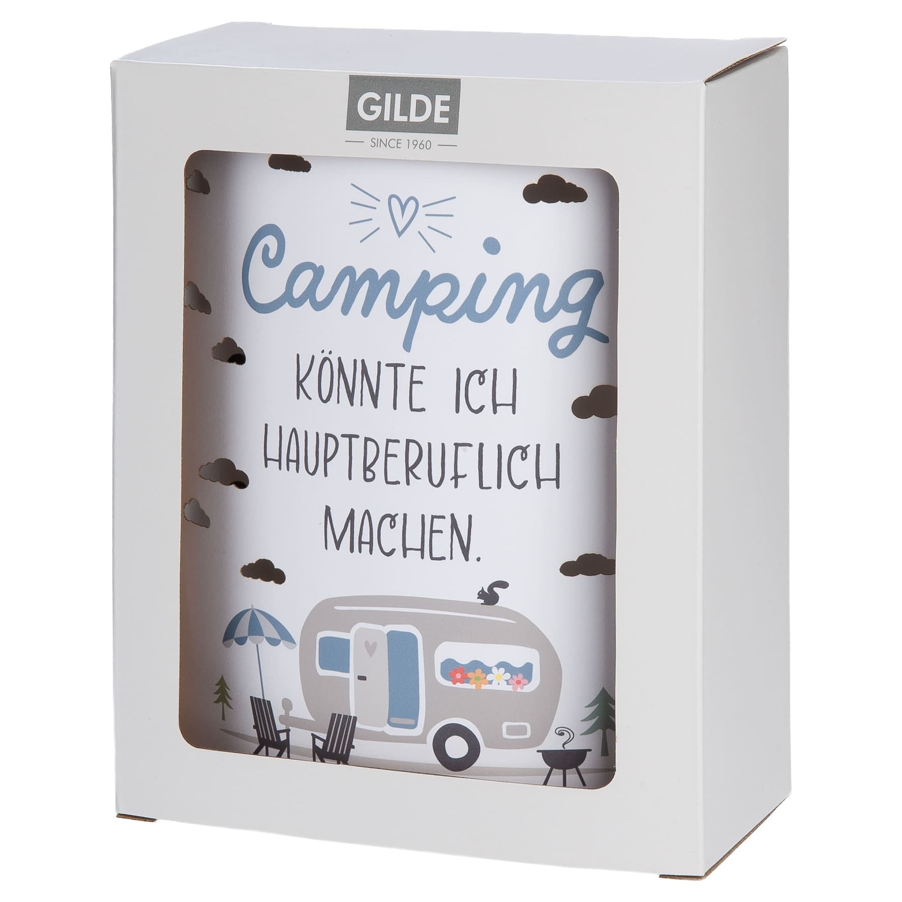 Produktinformationen "Camping Dekolampe weiß - Camping könnte ich hauptberuflich machen - 61742 Gilde Dekoleuchte"