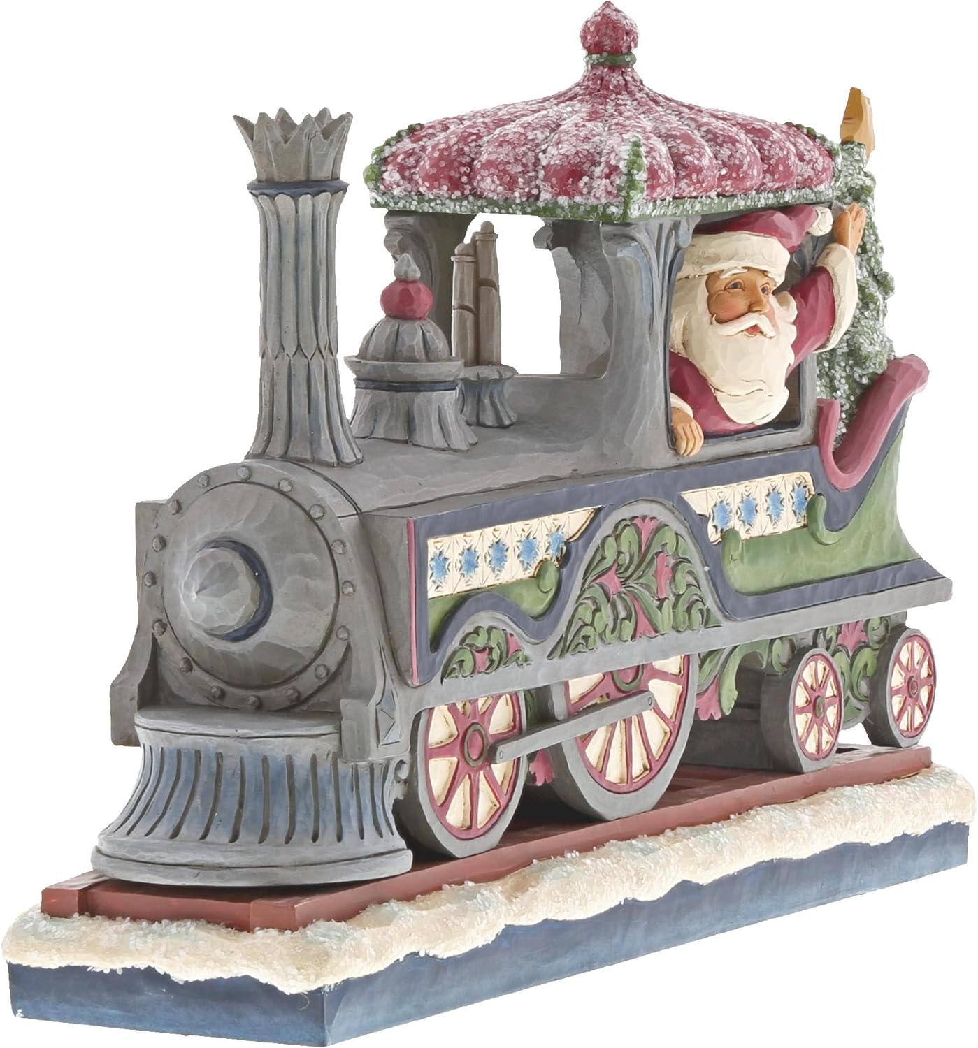 Dieser prächtige viktorianische Weihnachtsmann bringt festliche Nostalgie in Ihr Zuhause. Mit kunstvollen Details und einem Hauch von Magie fährt er in einer detailreichen Lokomotive aus dem 19. Jahrhundert, verziert mit schimmerndem Zuckerguss-Glitzer. Ein einzigartiges Sammlerstück aus der Jim Shore Heartwood Creek Kollektion.