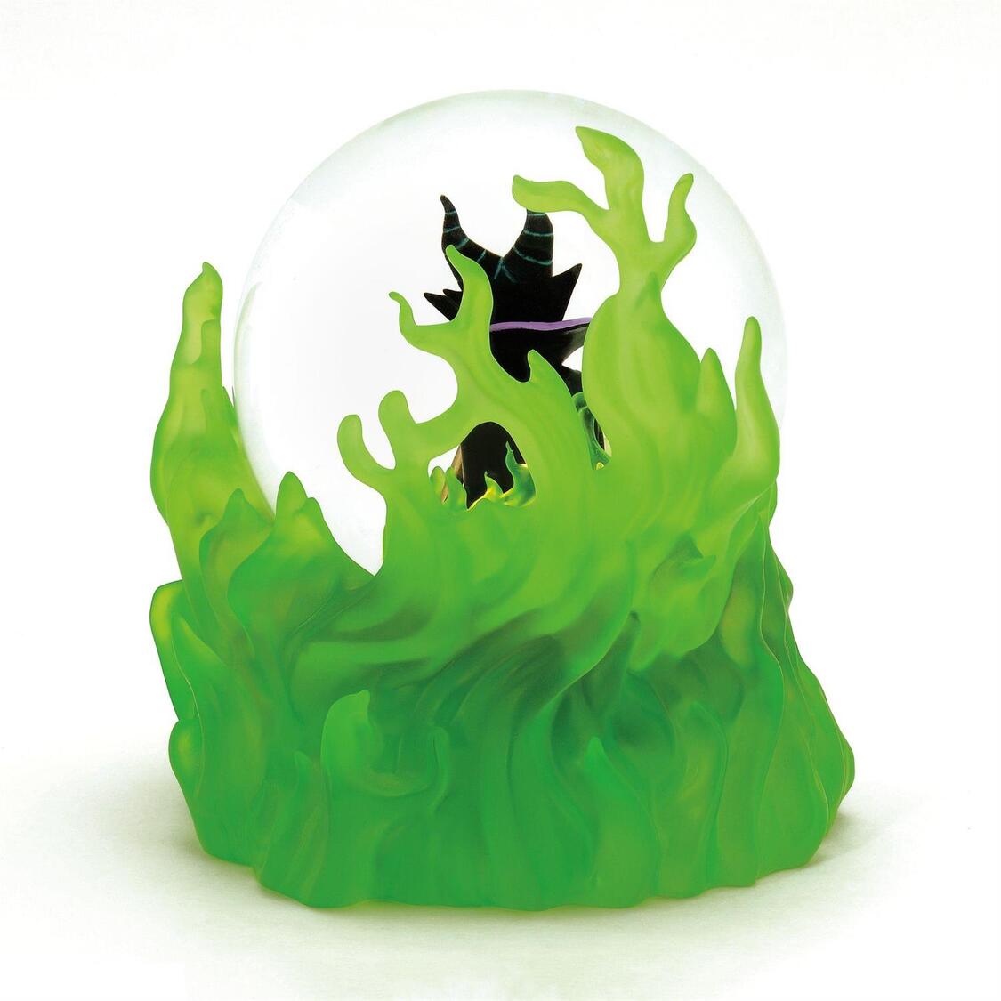 Wie ein Zauber vor Ihren Augen, erleuchtet diese Maleficent-Wasserball die leuchtend grünen, durchsichtigen Flammen, die Maleficent sowohl innen als auch außen umgeben, in dieser Schneekugel.