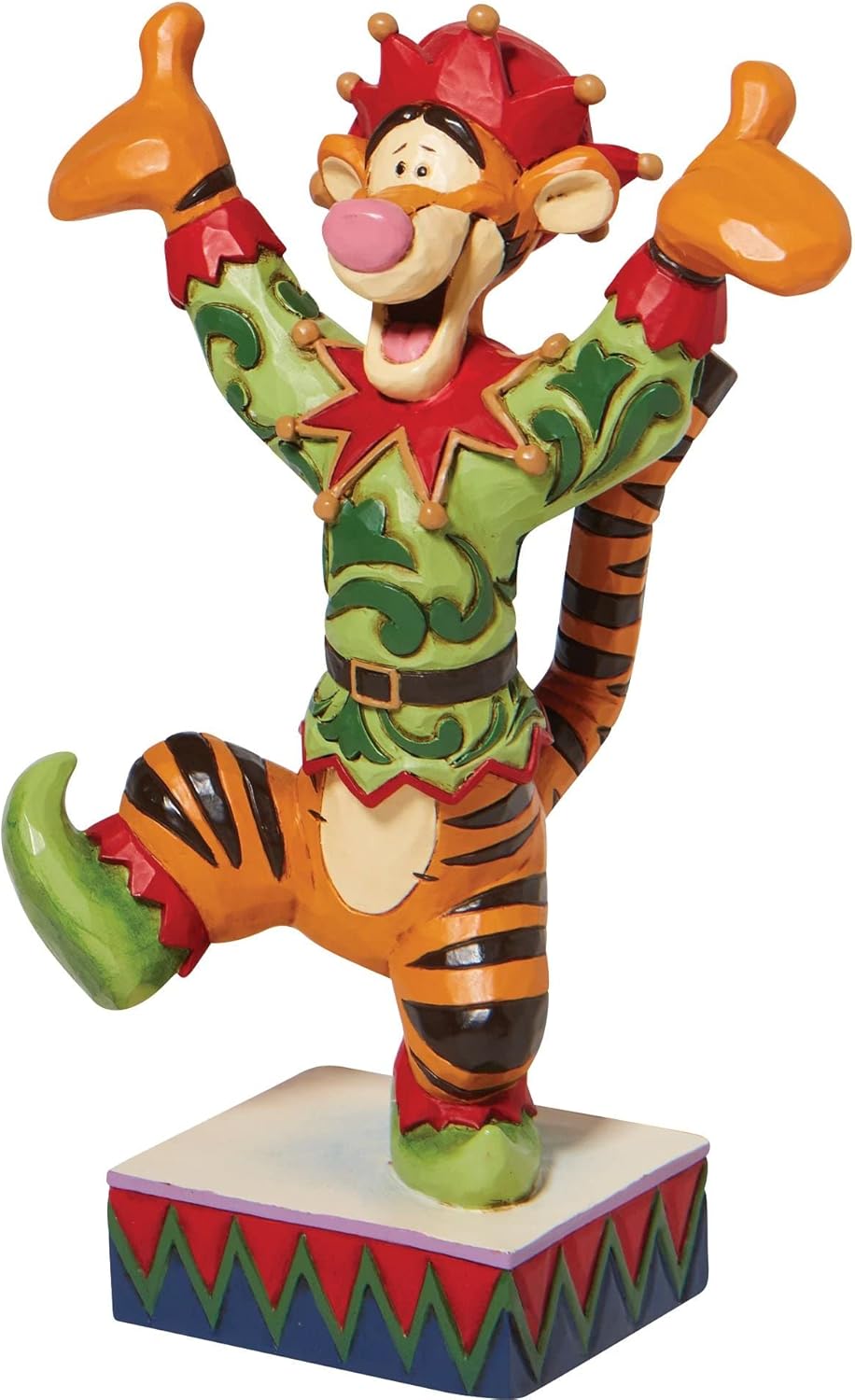 Es ist die wundervollste Zeit des Jahres, und Tigger ist bereit, Ihnen alles über die festliche Freude der Weihnachtszeit zu erzählen! Fröhlich und ausgelassen – mit einem breiten Lächeln – trägt der gestreifte Spaßvogel in dieser Walt Disney Figur von Jim Shore ein charmantes Elfenkostüm. Eine wunderbare Figur, die den Zauber und die Freude der Feiertage einfängt.