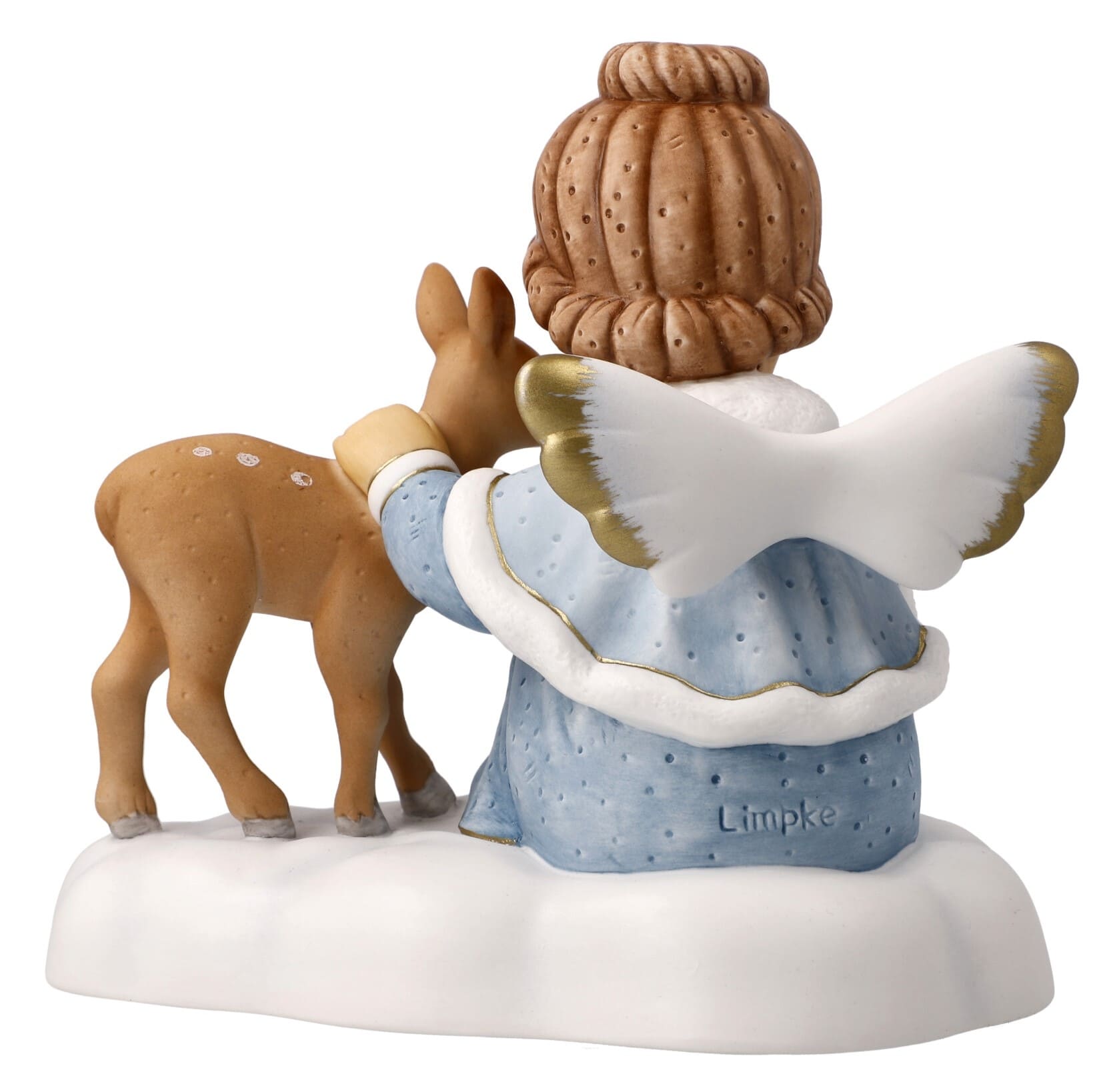 Die Goebel Figur „Ich pass auf dich auf“ aus der Nina & Marco Limited Edition ist ein zauberhaftes Kunstwerk, das Fürsorge und Schutz symbolisiert. Diese liebevoll gestaltete Figur zeigt ein Engelchen, das einen roten Apfel in der Hand hält und sich fürsorglich um ein kleines Rehkitz aus dem Wald kümmert. Der Engel schenkt dem Rehkitz Schutz und Geborgenheit, was durch die sanfte Darstellung und die Details der Handarbeit besonders zur Geltung kommt. Verziert mit einem Kristallstern und in einer limitierten Auflage von nur 1999 Stück erhältlich, ist diese Figur ein echtes Highlight für Sammler und eine wertvolle Ergänzung jeder Goebel Kollektion.