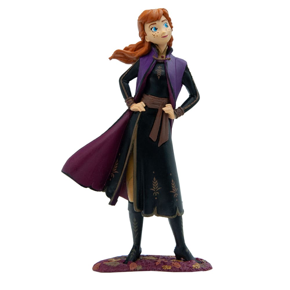 - Elegantes Design: Anna trägt ihr charakteristisches Outfit aus Frozen 2, bestehend aus einem schwarzen Rock, einer goldenen Schärpe und einem lila Umhang, das ihre königliche Eleganz und ihren starken Charakter unterstreicht.